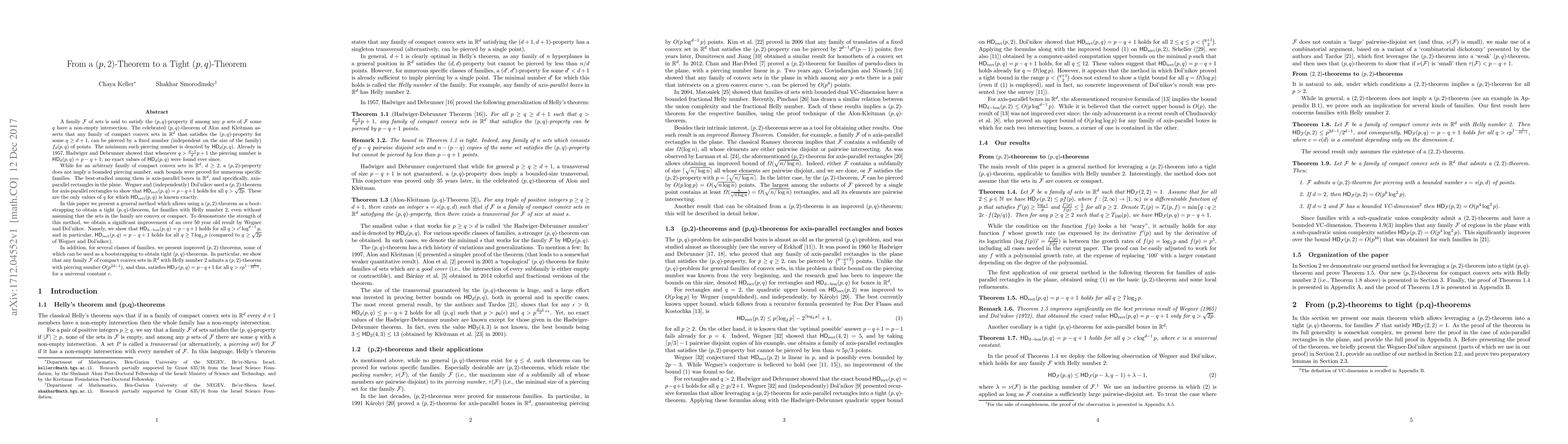 The paper introduces a general method for transforming a (p,2)-theorem into a tight (p,q)-theorem for families with Helly number 2, improving known results for axis-parallel rectangles and d-boxes.