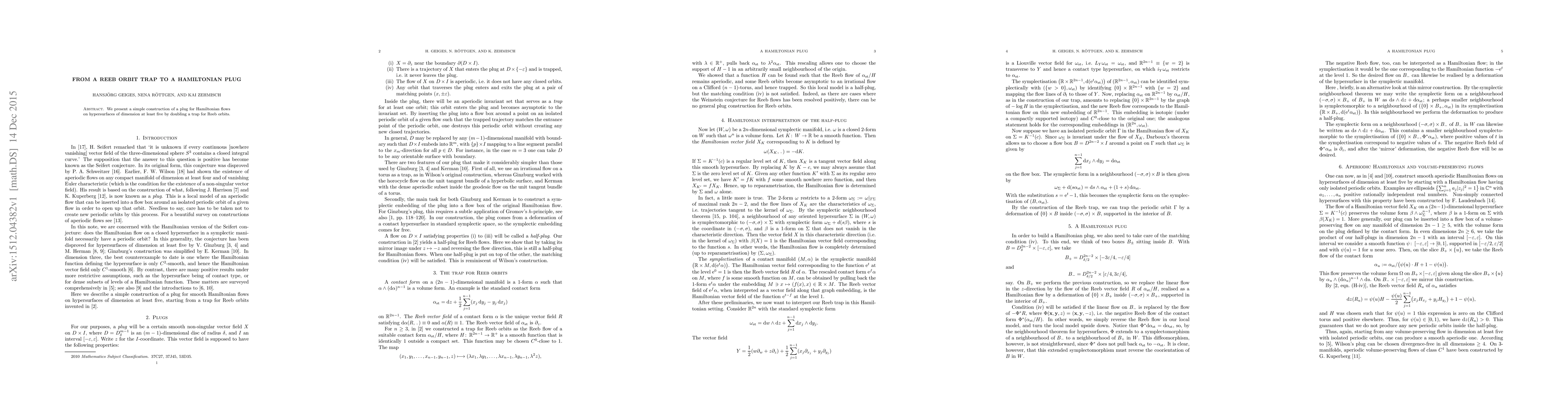 Researchers create a new method to build plugs for Hamiltonian flows on high-dimensional surfaces by doubling Reeb orbit traps, which could help understand complex dynamics.