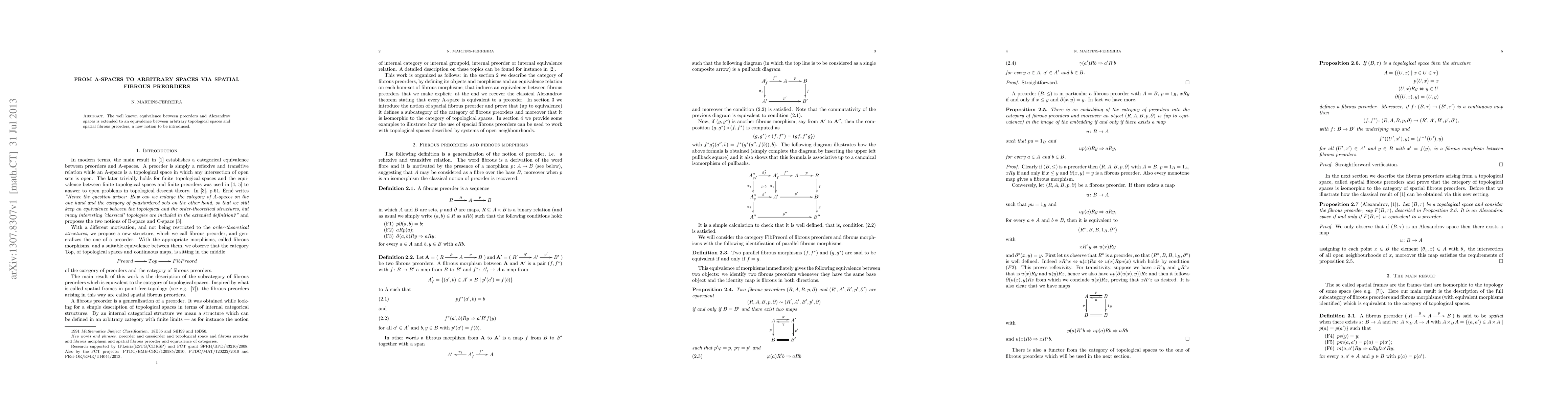 The well known equivalence between preorders and Alexandrov spaces is extended to an equivalence between arbitrary topological spaces and spatial fibrous preorders, a new notion to be introduced.