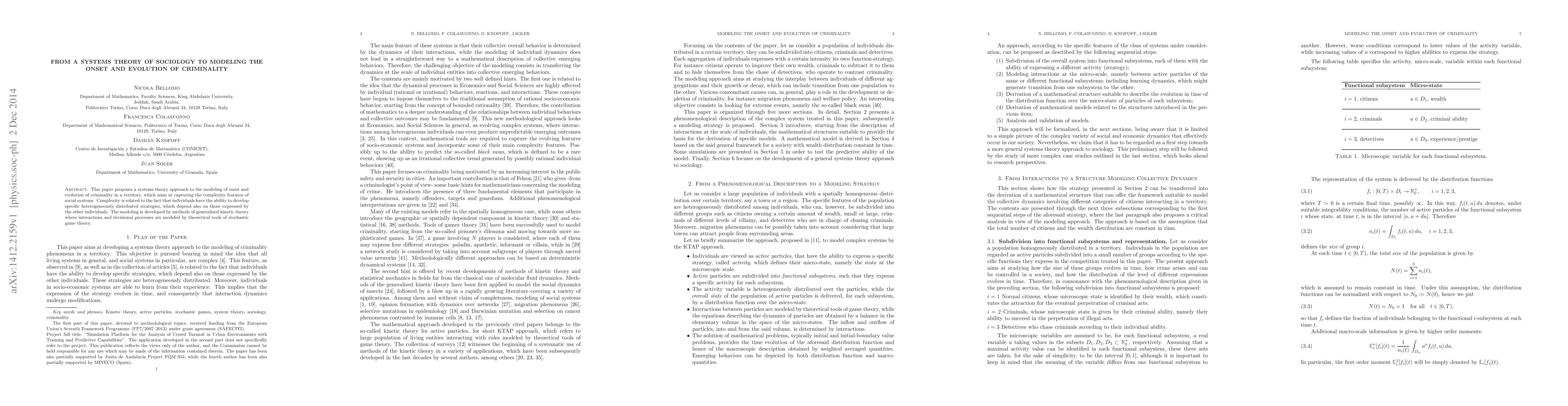 This paper introduces a systems theory model for understanding criminality onset and development, utilizing generalized kinetic theory and stochastic game theory to represent individual strategy formations and interactions in social systems.