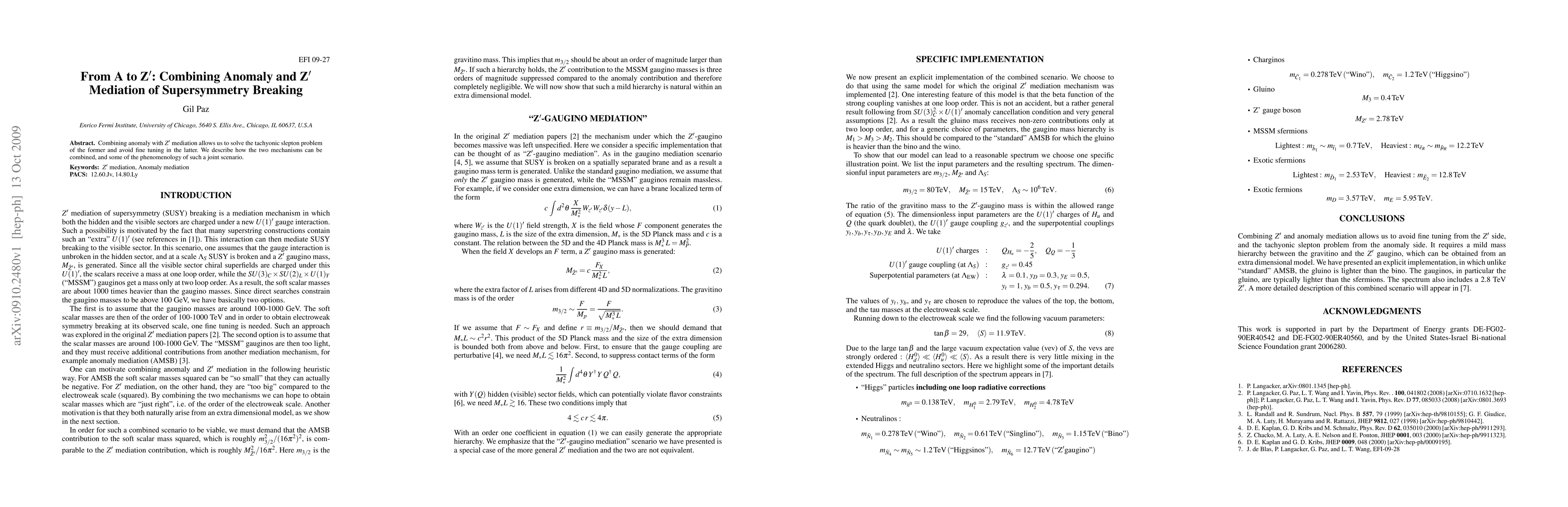 Combining anomaly with Z' mediation allows us to solve the tachyonic slepton problem of the former and avoid fine tuning in the latter. We describe how the two mechanisms can be combined, and some of the phenomenology of such a joint scenario.
