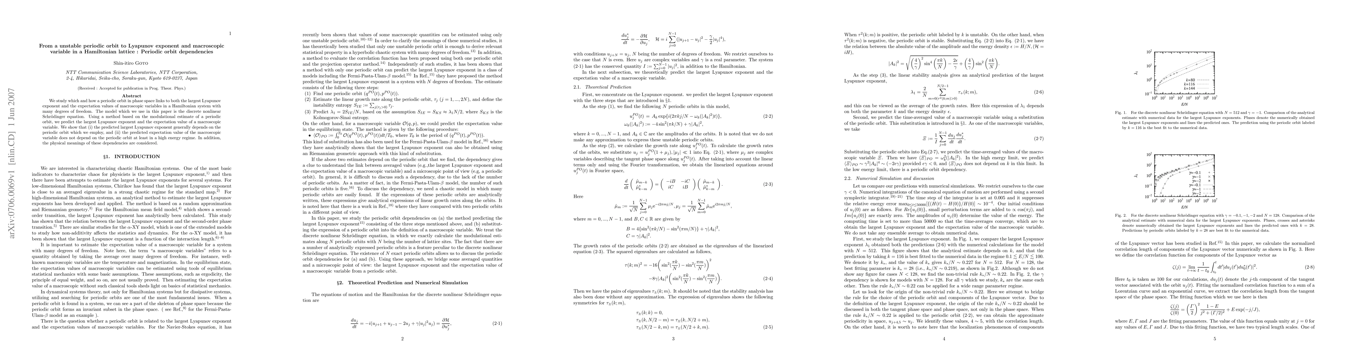 Researchers studied how a periodic orbit in a complex system relates to its largest Lyapunov exponent and macroscopic variables, finding that the Lyapunov exponent depends on the orbit but the macroscopic variable's expectation does not.