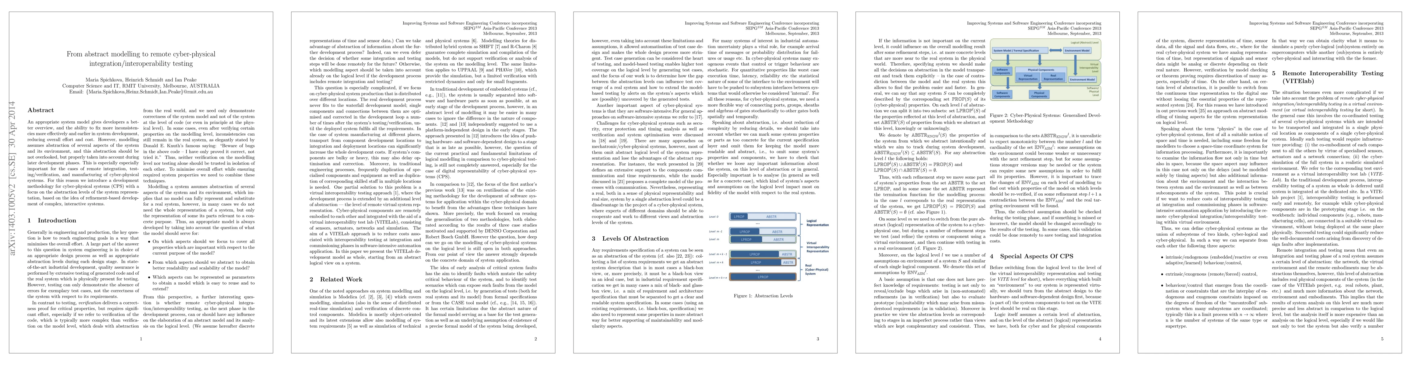 This paper proposes a development methodology for cyber-physical systems that emphasizes abstraction levels in system modelling, focusing on refinement-based development to enhance integration and testing. It stresses the importance of considering abstraction during later development phases to improve remote integration and interoperability.