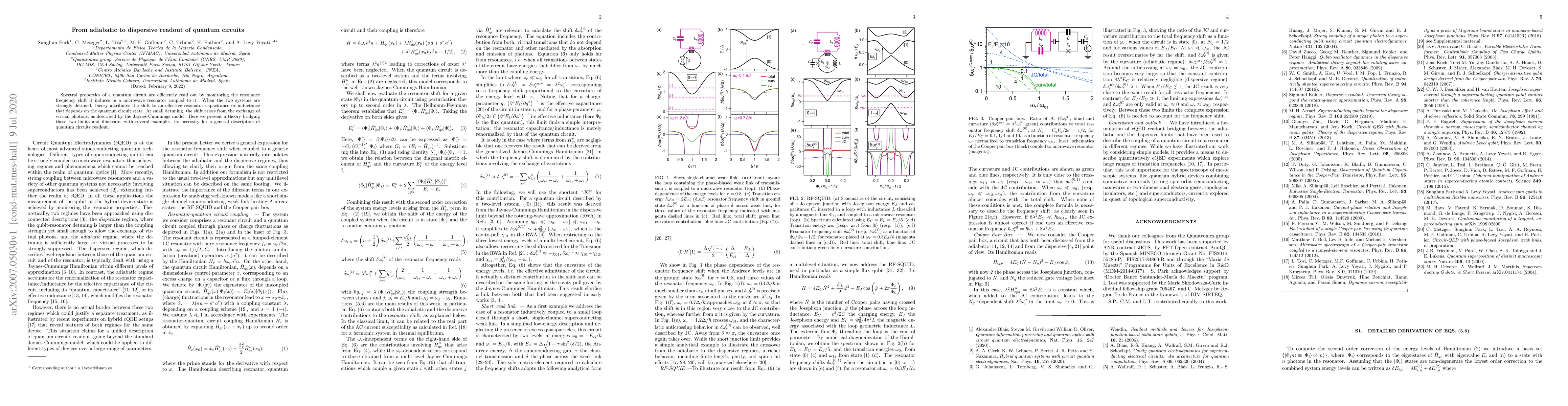 Spectral properties of a quantum circuit are efficiently read out by monitoring the resonance frequency shift it induces in a microwave resonator coupled to it. When the two systems are strongly detuned, theory attributes the shift to an effective resonator capacitance or inductance that depends on the quantum circuit state. At small detuning, the shift arises from the exchange of virtual photons, as described by the Jaynes-Cummings model. Here we present a theory bridging these two limits and illustrate, with several examples, its necessity for a general description of quantum circuits readout.