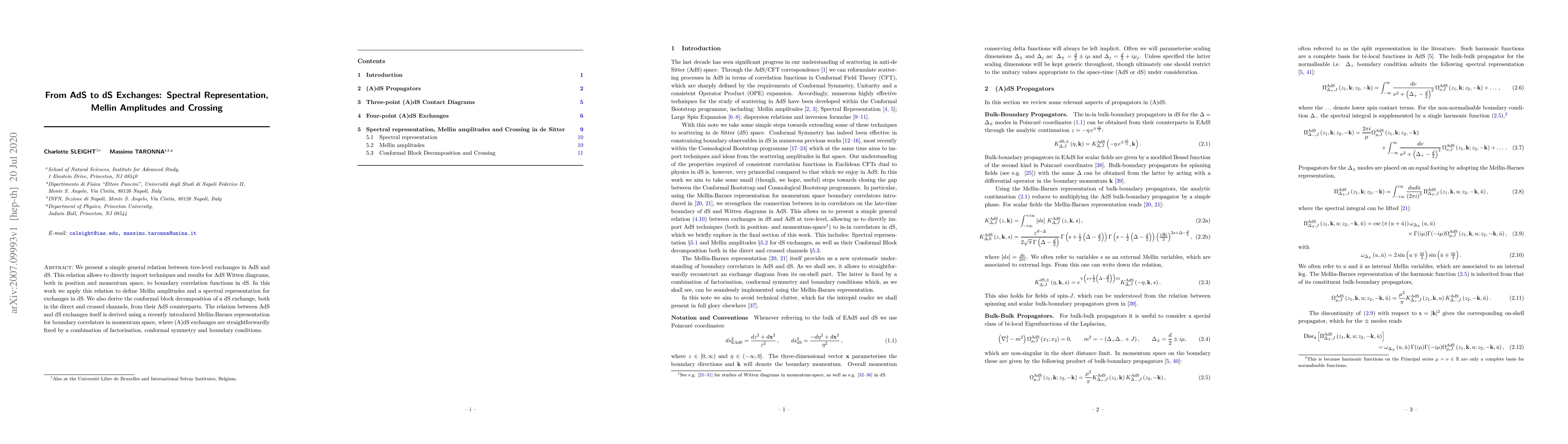 We present a simple general relation between tree-level exchanges in AdS and dS. This relation allows to directly import techniques and results for AdS Witten diagrams, both in position and momentum space, to boundary correlation functions in dS. In this work we apply this relation to define Mellin amplitudes and a spectral representation for exchanges in dS. We also derive the conformal block decomposition of a dS exchange, both in the direct and crossed channels, from their AdS counterparts. The relation between AdS and dS exchanges itself is derived using a recently introduced Mellin-Barnes representation for boundary correlators in momentum space, where (A)dS exchanges are straightforwardly fixed by a combination of factorisation, conformal symmetry and boundary conditions.