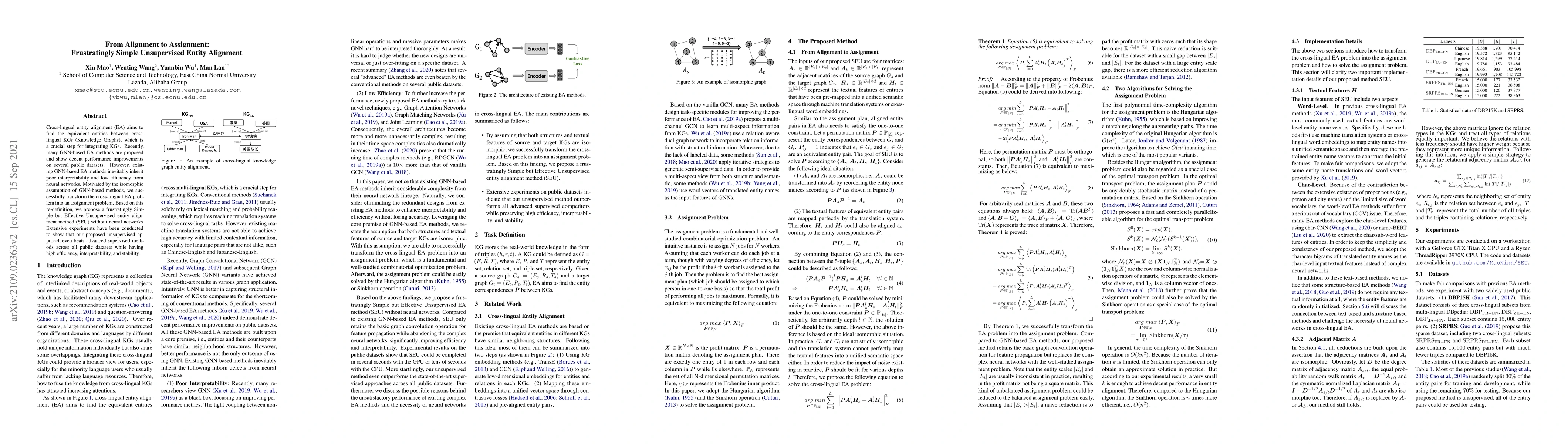 This paper proposes a simple yet effective unsupervised method (SEU) for cross-lingual entity alignment, transforming the problem into an assignment problem without using neural networks. The method outperforms advanced supervised methods on public datasets, demonstrating high efficiency, interpretability, and stability.