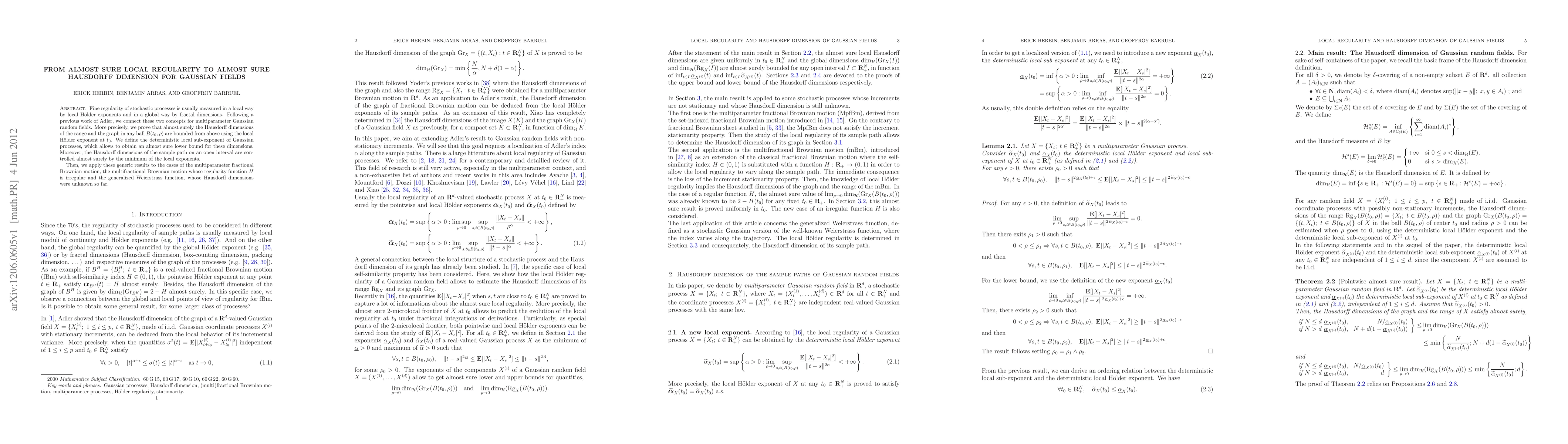 A research paper proves that almost surely, Gaussian fields have bounded Hausdorff dimensions in certain regions, controlled by local H"older exponents, providing new insights into their fine regularity.