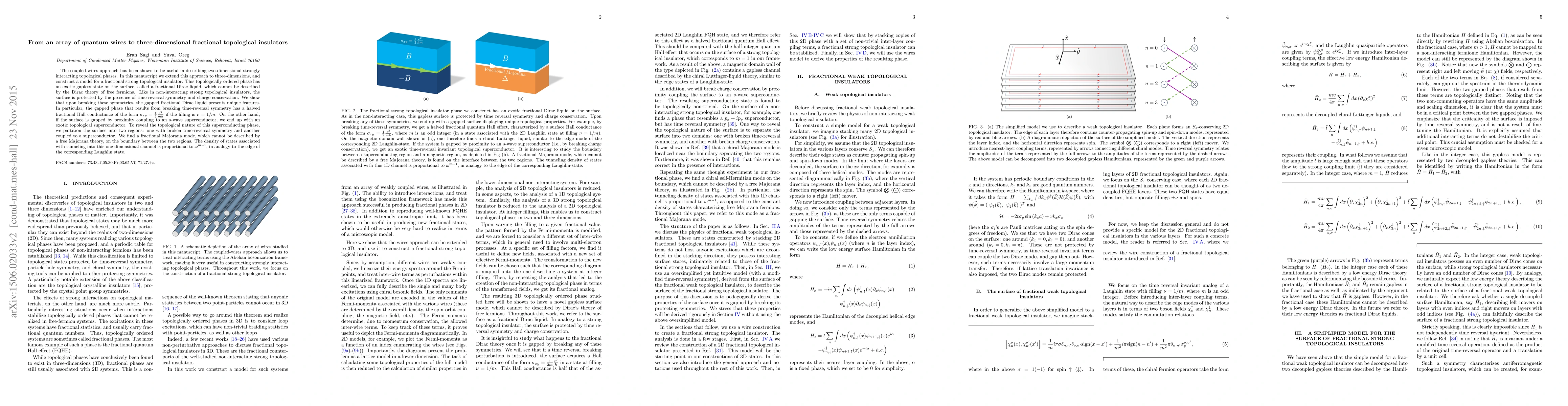 The coupled-wires approach has been shown to be useful in describing two-dimensional strongly interacting topological phases. In this manuscript we extend this approach to three-dimensions, and construct a model for a fractional strong topological insulator. This topologically ordered phase has an exotic gapless state on the surface, called a fractional Dirac liquid, which cannot be described by the Dirac theory of free fermions. Like in non-interacting strong topological insulators, the surface is protected by the presence of time-reversal symmetry and charge conservation. We show that upon breaking these symmetries, the gapped fractional Dirac liquid presents unique features. In particular, the gapped phase that results from breaking time-reversal symmetry has a halved fractional Hall conductance of the form $\sigma_{xy}=\frac{1}{2}\frac{e^{2}}{mh}$ if the filling is $\nu=1/m$. On the other hand, if the surface is gapped by proximity coupling to an $s$-wave superconductor, we end up with an exotic topological superconductor. To reveal the topological nature of this superconducting phase, we partition the surface into two regions: one with broken time-reversal symmetry and another coupled to a superconductor. We find a fractional Majorana mode, which cannot be described by a free Majorana theory, on the boundary between the two regions. The density of states associated with tunneling into this one-dimensional channel is proportional to $\omega^{m-1}$, in analogy to the edge of the corresponding Laughlin state.