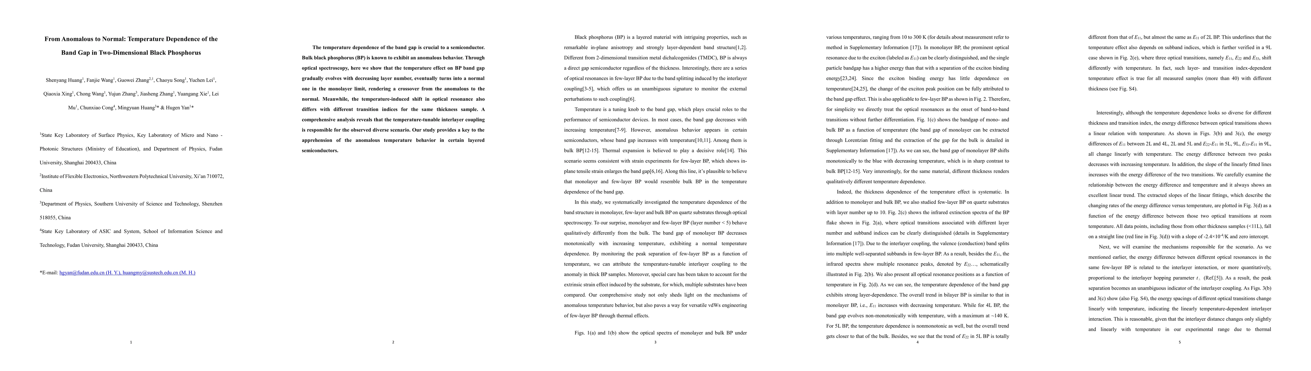 This study reveals that the temperature dependence of the band gap in black phosphorus transitions from anomalous in bulk to normal in monolayers, with interlayer coupling playing a key role. The temperature-induced optical resonance shift varies with transition indices, highlighting the temperature-tunable nature of interlayer interactions.