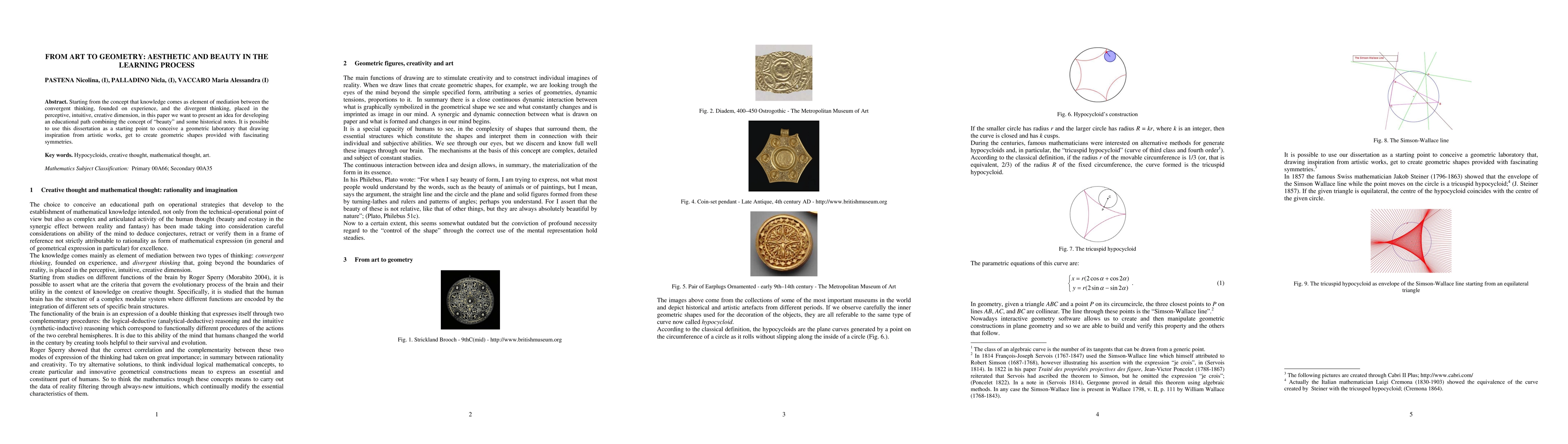 This research paper proposes an educational path combining artistic and geometric learning through beauty and symmetry, aiming to inspire creative thinking and problem-solving skills.