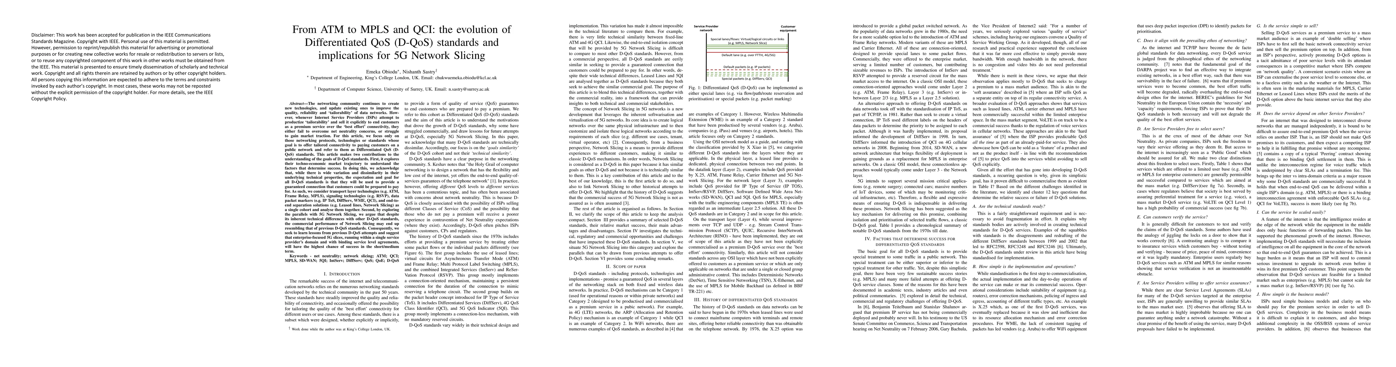 The networking community continues to create new technologies and update existing ones to improve the quality, reliability, and "tailorability" of data networks. However, whenever Internet service providers attempt to productize "tailorability" and sell it explicitly to end customers as a premium service over best effort connectivity, they either fail to overcome net neutrality concerns or struggle to gain market traction. For this article, we focus only on those networking protocols, technologies, or standards whose goal is to offer tailored connectivity to paying customers on a public network and refer to them as differentiated QoS (D-QoS) standards. This article makes two contributions. First, it explores the techno-economic market trajectory of D-QoS standards to understand the factors that determine success. In doing this, we acknowledge that while there is wide variation and dissimilarity in their underlying technical properties, the expectation and goal for all D-QoS standards is that they will be used to provide guaranteed connection for which customers could be prepared to pay. As such, we consider Layer 2/3 technologies (e.g., ATM, frame relay, MPLS), signaling technologies (e.g., RSVP), data packet markers (e.g., IP ToS, DiffServ, WME, QCI), and end-to-end separation solutions (e.g., leased lines, network slicing) as a single cohort and analyze them together. Second, by exploring the parallels with 5G network slicing, we argue that despite its inherent technical differences with other D-QoS standards, the commercial performance of network slicing may end up resembling that of previous D-QoS standards. Consequently, we seek to learn lessons from previous D-QoS attempts and suggest that enterprise-focused 5G slices, running within a single service provider's domain and with binding service level agreements, will have the highest chance of success in the short/medium term.