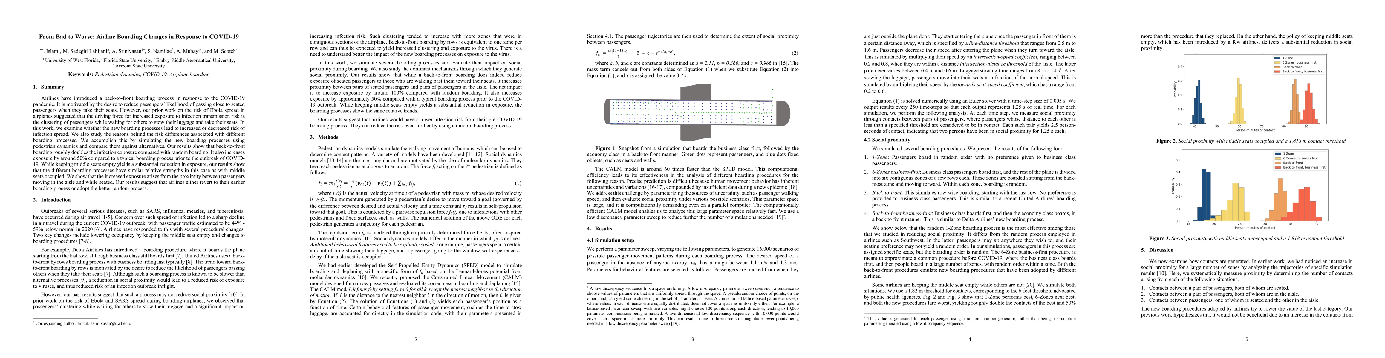 Airlines have introduced a back-to-front boarding process in response to the COVID-19 pandemic. It is motivated by the desire to reduce passengers' likelihood of passing close to seated passengers when they take their seats. However, our prior work on the risk of Ebola spread in airplanes suggested that the driving force for increased exposure to infection transmission risk is the clustering of passengers while waiting for others to stow their luggage and take their seats. In this work, we examine whether the new boarding processes lead to increased or decreased risk of infection spread. We also study the reasons behind the risk differences associated with different boarding processes. We accomplish this by simulating the new boarding processes using pedestrian dynamics and compare them against alternatives. Our results show that back-to-front boarding roughly doubles the infection exposure compared with random boarding. It also increases exposure by around 50% compared to a typical boarding process prior to the outbreak of COVID-19. While keeping middle seats empty yields a substantial reduction in exposure, our results show that the different boarding processes have similar relative strengths in this case as with middle seats occupied. We show that the increased exposure arises from the proximity between passengers moving in the aisle and while seated. Our results suggest that airlines either revert to their earlier boarding process or adopt the better random process.