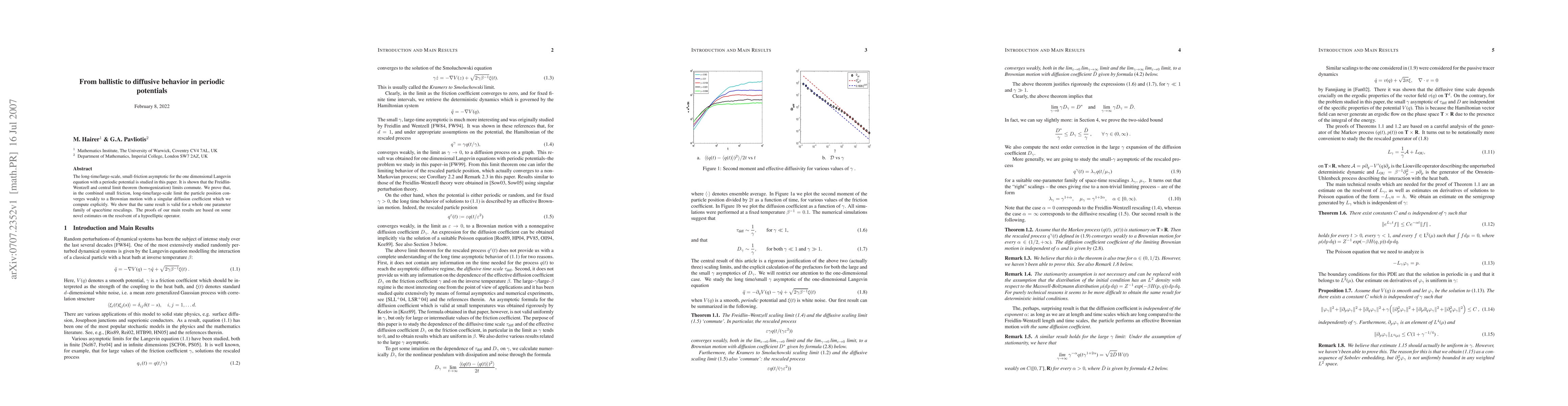 This paper investigates the behavior of particles in a one-dimensional Langevin equation with a periodic potential, demonstrating that the Freidlin-Wentzell and central limit theorems commute. It shows that under small friction, long-time/large-scale limits, the particle position converges to a Brownian motion with a singular diffusion coefficient, computed explicitly.