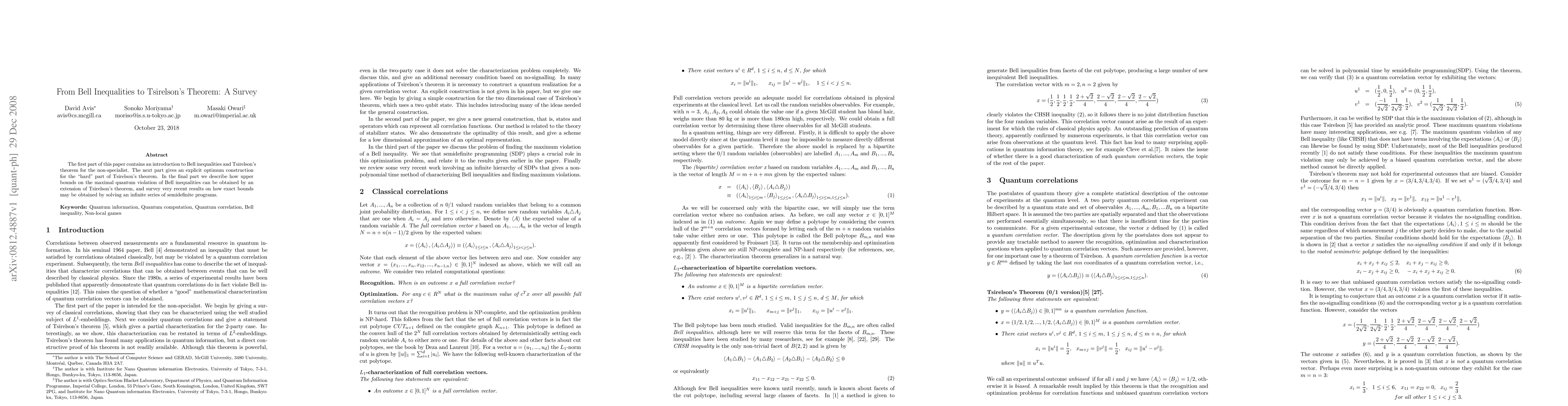 This paper introduces Bell inequalities and Tsirelson's theorem for non-specialists, provides an optimum construction for the "hard" part of Tsirelson's theorem, and surveys recent results on obtaining exact bounds via an infinite series of semidefinite programs.