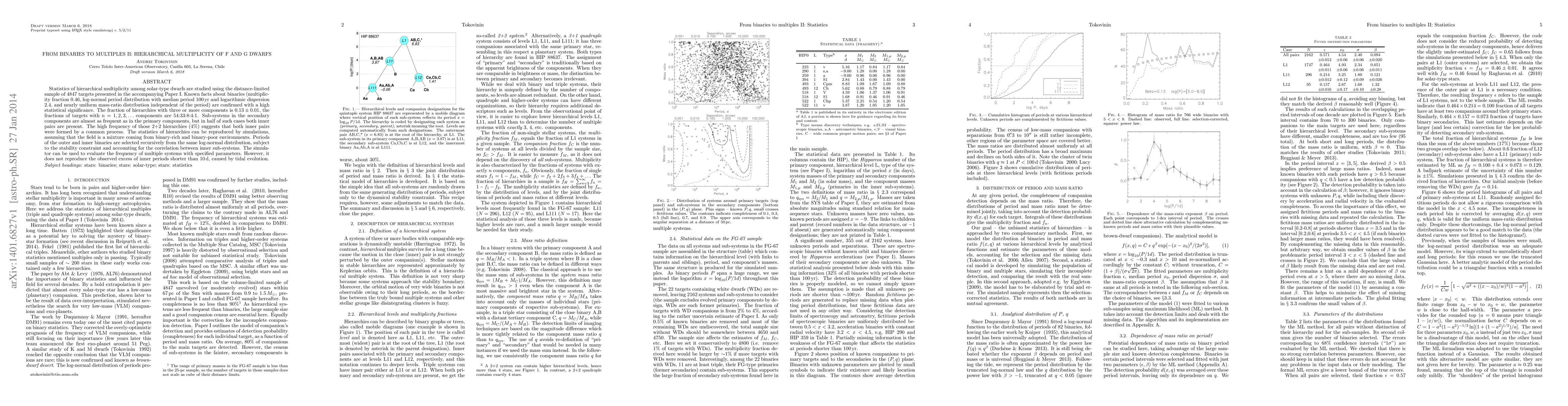 This paper investigates the hierarchical multiplicity among solar-type F and G dwarfs, confirming known binary statistics and revealing a 13% fraction of systems with three or more components. The study finds that 2+2 hierarchies are common, suggesting a shared formation process, and uses simulations to model the observed multiplicity structure.