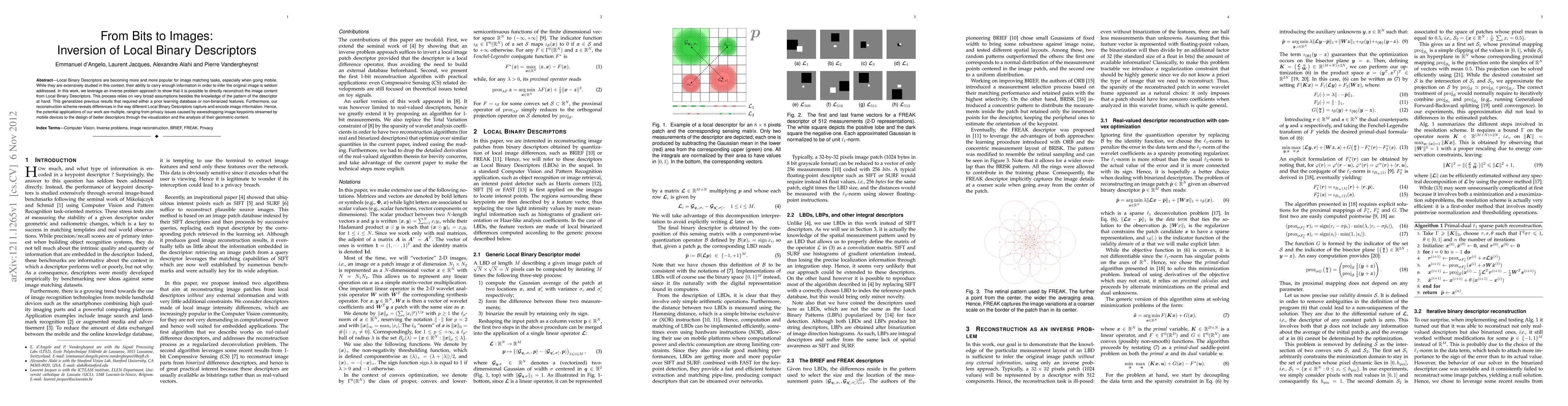 Local Binary Descriptors are becoming more and more popular for image matching tasks, especially when going mobile. While they are extensively studied in this context, their ability to carry enough information in order to infer the original image is seldom addressed. In this work, we leverage an inverse problem approach to show that it is possible to directly reconstruct the image content from Local Binary Descriptors. This process relies on very broad assumptions besides the knowledge of the pattern of the descriptor at hand. This generalizes previous results that required either a prior learning database or non-binarized features. Furthermore, our reconstruction scheme reveals differences in the way different Local Binary Descriptors capture and encode image information. Hence, the potential applications of our work are multiple, ranging from privacy issues caused by eavesdropping image keypoints streamed by mobile devices to the design of better descriptors through the visualization and the analysis of their geometric content.
