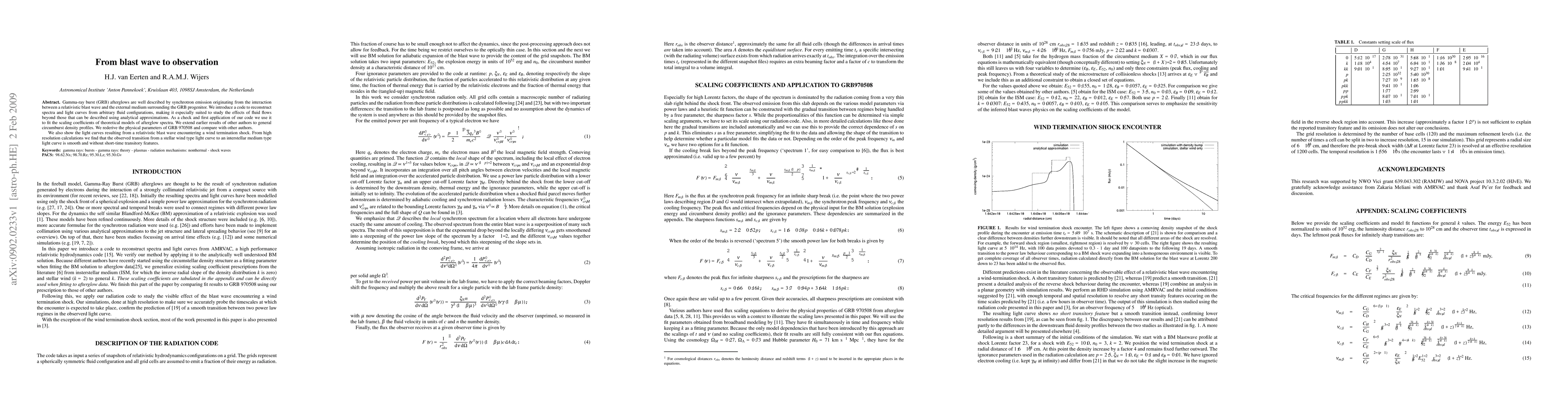 The paper introduces a code to reconstruct spectra and light curves from arbitrary fluid configurations, particularly useful for studying fluid flows beyond analytical approximations. It uses the BM solution for adiabatic expansion of the blast wave and incorporates parameters like explosion energy, circumburst density, and ignorance parameters (slope of relativistic particle distribution, fraction of particles accelerated, etc.)