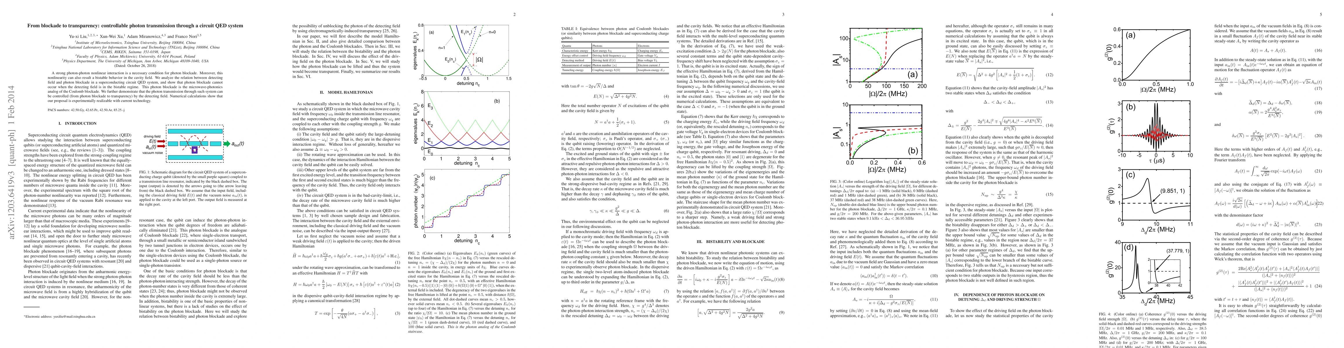 This paper explores a superconducting circuit QED system where strong photon-photon nonlinear interactions lead to photon blockade and bistable behavior. It demonstrates that photon blockade does not occur in the bistable regime and shows that photon transmission can be controlled by adjusting the detecting field, making the system experimentally feasible with current technology.