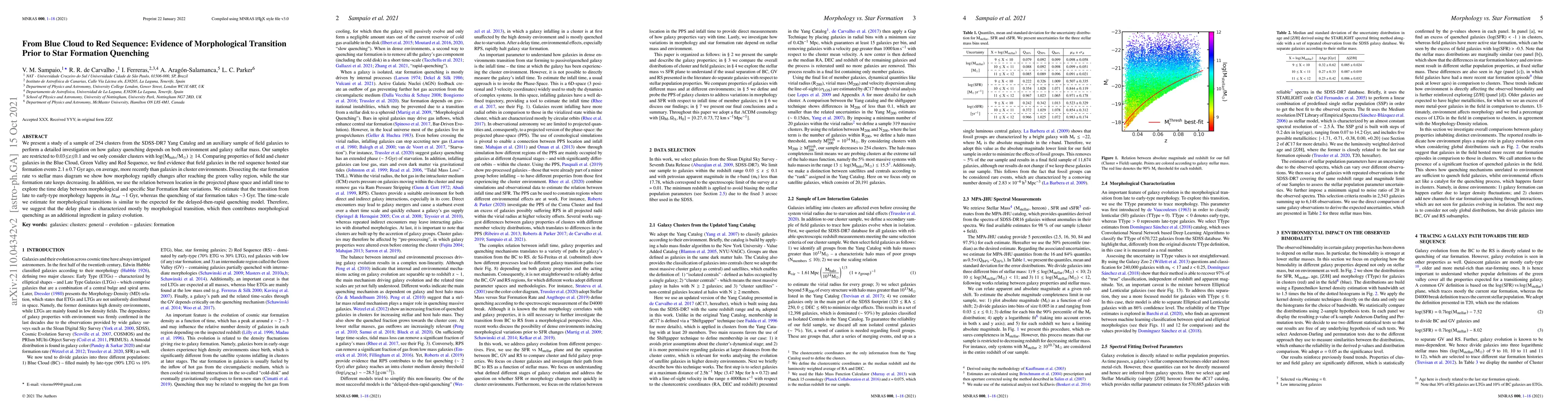 This study investigates the morphological transition of galaxies in clusters and the field, finding that field galaxies in the red sequence experienced star formation events more recently than cluster galaxies. The research indicates a 1-Gyr delay between morphological changes and star formation quenching, suggesting that morphological transition precedes and contributes to the quenching process.