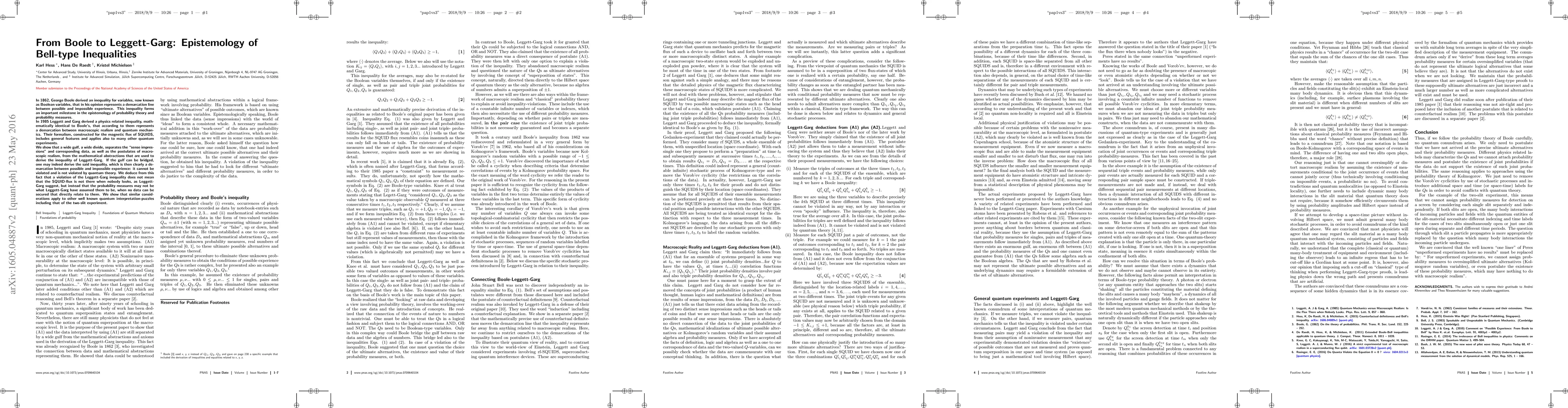 In 1862, George Boole derived an inequality for variables, now known as Boolean variables, that in his opinion represents a demarcation line between possible and impossible experience. This inequality forms an important milestone in the epistemology of probability theory and probability measures. In 1985 Leggett and Garg derived a physics related inequality, mathematically identical to Boole's, that according to them represents a demarcation between macroscopic realism and quantum mechanics. Their formalism, constructed for the magnetic flux of SQUIDS, includes general features and applies also to many other quantum experiments. We show that a wide gulf, a wide divide, separates the "sense impressions" and corresponding data, as well as the postulates of macroscopic realism, from the mathematical abstractions that are used to derive the inequality of Leggett-Garg. If the gulf can be bridged, one may indeed derive the said inequality, which is then clearly a demarcation between possible and impossible experience: it cannot be violated and is not violated by quantum theory. We deduce from this fact that a violation of the Leggett-Garg inequality does not mean that the SQUID-flux is not there when nobody looks, as Leggett-Garg suggest, but instead that the probability measures may not be what Leggett-Garg have assumed them to be, when no data can be secured that directly relate to them. We show that similar considerations apply to other well known quantum interpretation-puzzles including that of the two-slit experiment.