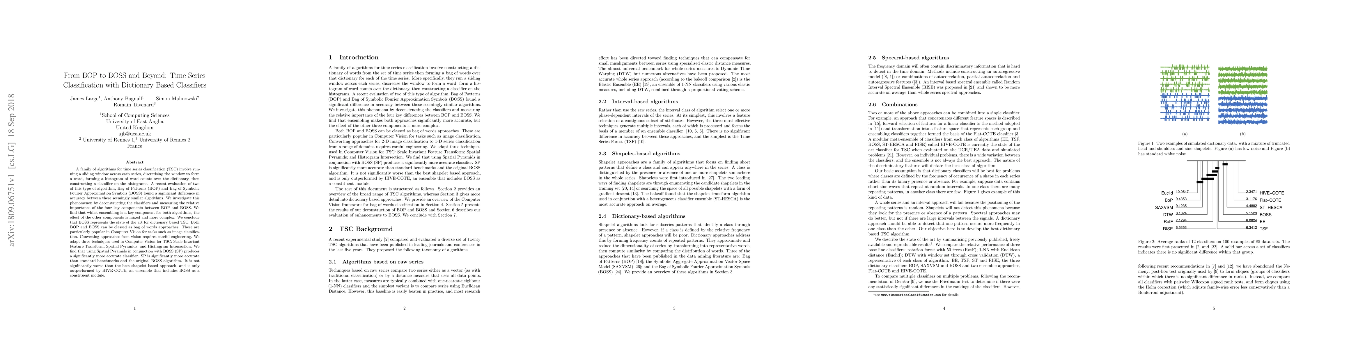 A family of algorithms for time series classification (TSC) involve running a sliding window across each series, discretising the window to form a word, forming a histogram of word counts over the dictionary, then constructing a classifier on the histograms. A recent evaluation of two of this type of algorithm, Bag of Patterns (BOP) and Bag of Symbolic Fourier Approximation Symbols (BOSS) found a significant difference in accuracy between these seemingly similar algorithms. We investigate this phenomenon by deconstructing the classifiers and measuring the relative importance of the four key components between BOP and BOSS. We find that whilst ensembling is a key component for both algorithms, the effect of the other components is mixed and more complex. We conclude that BOSS represents the state of the art for dictionary based TSC. Both BOP and BOSS can be classed as bag of words approaches. These are particularly popular in Computer Vision for tasks such as image classification. Converting approaches from vision requires careful engineering. We adapt three techniques used in Computer Vision for TSC: Scale Invariant Feature Transform; Spatial Pyramids; and Histrogram Intersection. We find that using Spatial Pyramids in conjunction with BOSS (SP) produces a significantly more accurate classifier. SP is significantly more accurate than standard benchmarks and the original BOSS algorithm. It is not significantly worse than the best shapelet based approach, and is only outperformed by HIVE-COTE, an ensemble that includes BOSS as a constituent module.