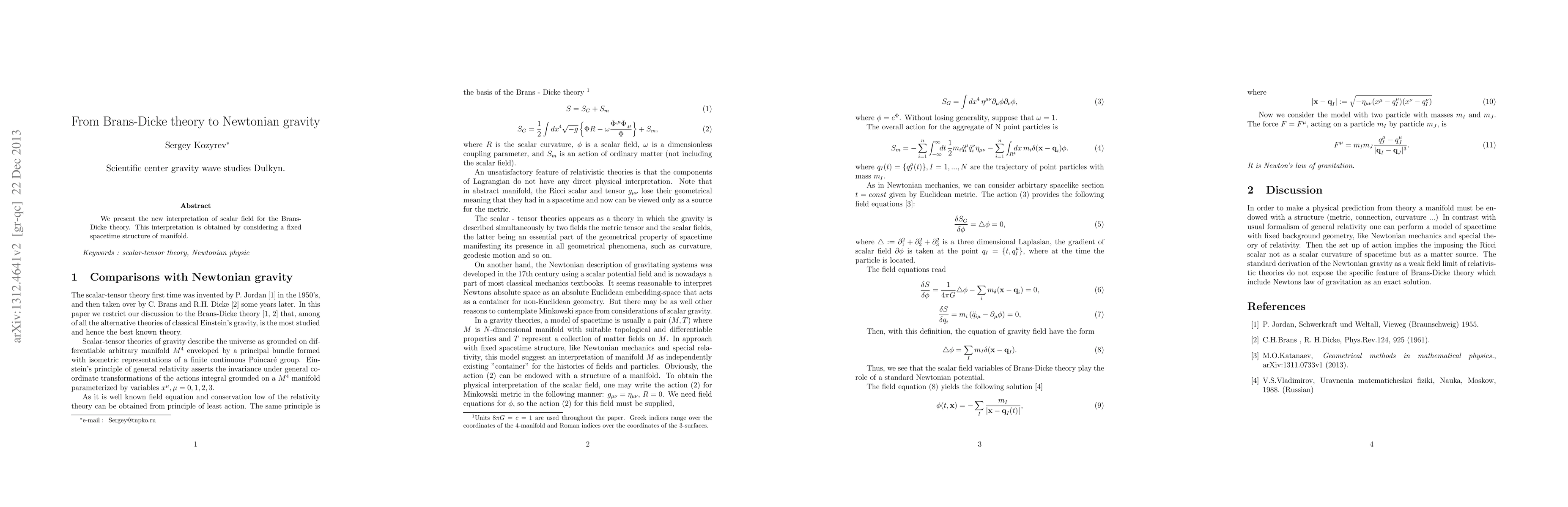 We present the new interpretation of scalar field for the Brans-Dicke theory. This interpretation is obtained by considering a fixed spacetime structure of manifold.
