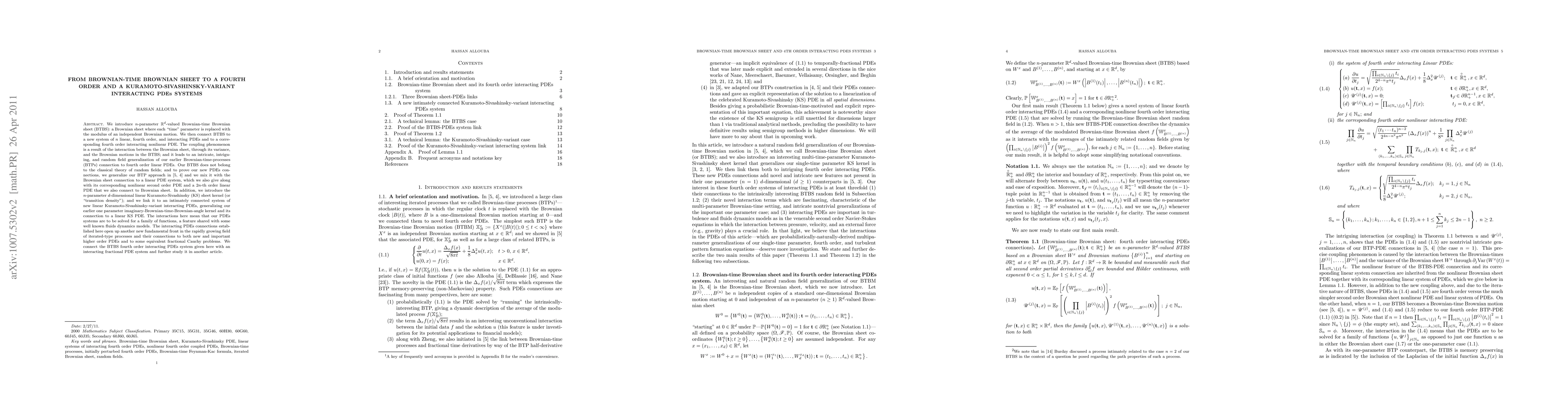 This paper introduces an $n$-parameter $\Rd$-valued Brownian-time Brownian sheet (BTBS) and connects it to a new system of $n$ linear, fourth-order, interacting PDEs and a corresponding nonlinear PDE. The study also links an $n$-parameter $d$-dimensional linear Kuramoto-Sivashinsky sheet kernel to a new system of Kuramoto-Sivashinsky-variant interacting PDEs, expanding on earlier connections to the KS PDE.
