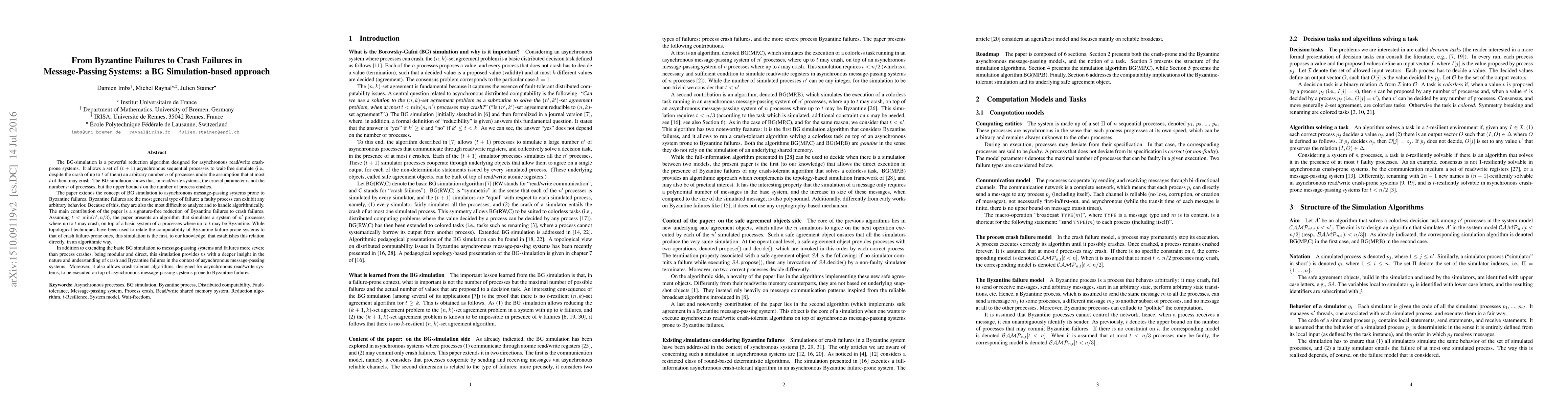 The paper introduces a BG-simulation algorithm for asynchronous message-passing systems, extending it to handle Byzantine failures by reducing them to crash failures. This provides a direct, modular algorithmic approach to simulate crash-prone systems on top of Byzantine-prone ones, offering insights into failure types and enabling the application of crash-tolerant algorithms in Byzantine environments.