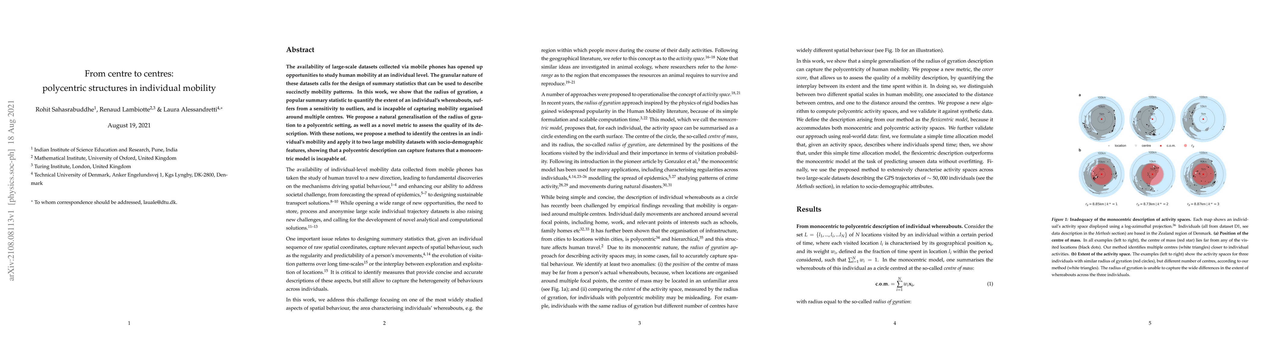 The availability of large-scale datasets collected via mobile phones has opened up opportunities to study human mobility at an individual level. The granular nature of these datasets calls for the design of summary statistics that can be used to describe succinctly mobility patterns. In this work, we show that the radius of gyration, a popular summary statistic to quantify the extent of an individual's whereabouts, suffers from a sensitivity to outliers, and is incapable of capturing mobility organised around multiple centres. We propose a natural generalisation of the radius of gyration to a polycentric setting, as well as a novel metric to assess the quality of its description. With these notions, we propose a method to identify the centres in an individual's mobility and apply it to two large mobility datasets with socio-demographic features, showing that a polycentric description can capture features that a monocentric model is incapable of.