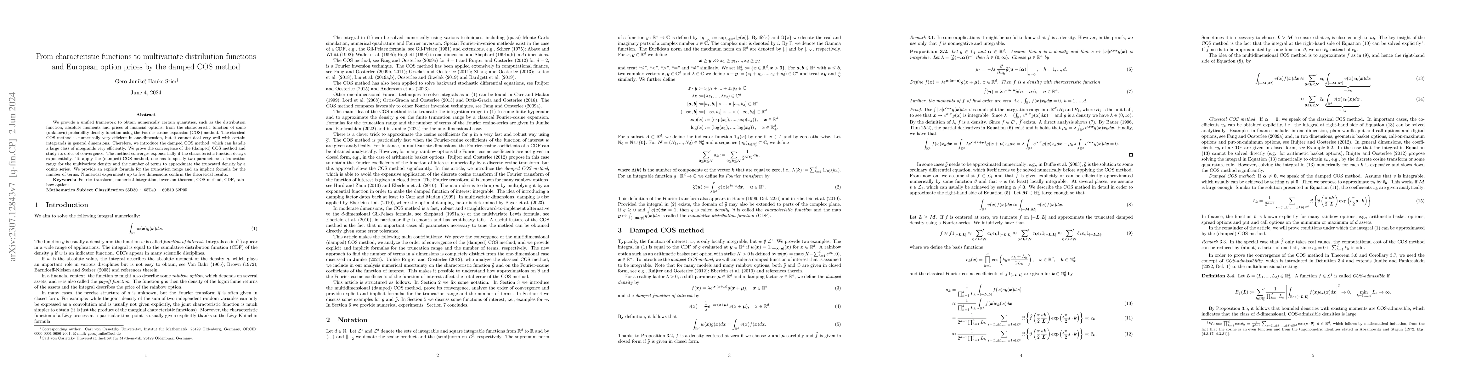 This paper introduces a damped COS method to efficiently compute multivariate distribution functions, moments, and European option prices from the characteristic function, addressing limitations of the classical COS method in higher dimensions. The method converges exponentially under certain conditions and parameters are provided for its practical application.