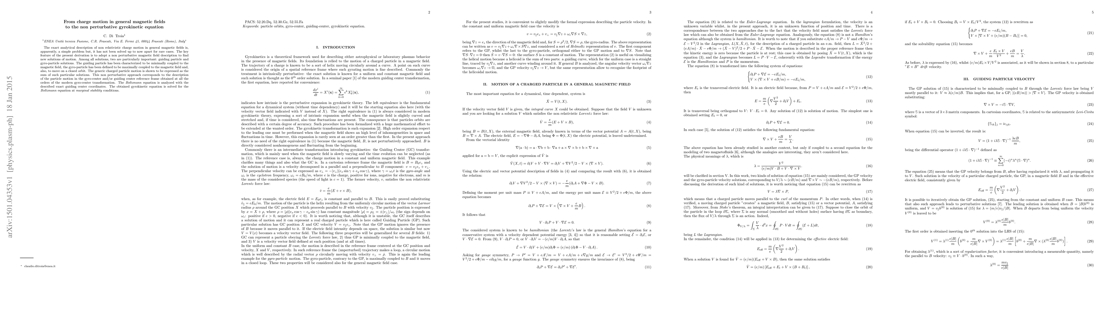 Researchers developed a non-perturbative approach to describe charge motion in general magnetic fields, revealing two key solutions: the guiding particle and gyro-particle, which capture minimal and maximal coupling to the field, respectively.