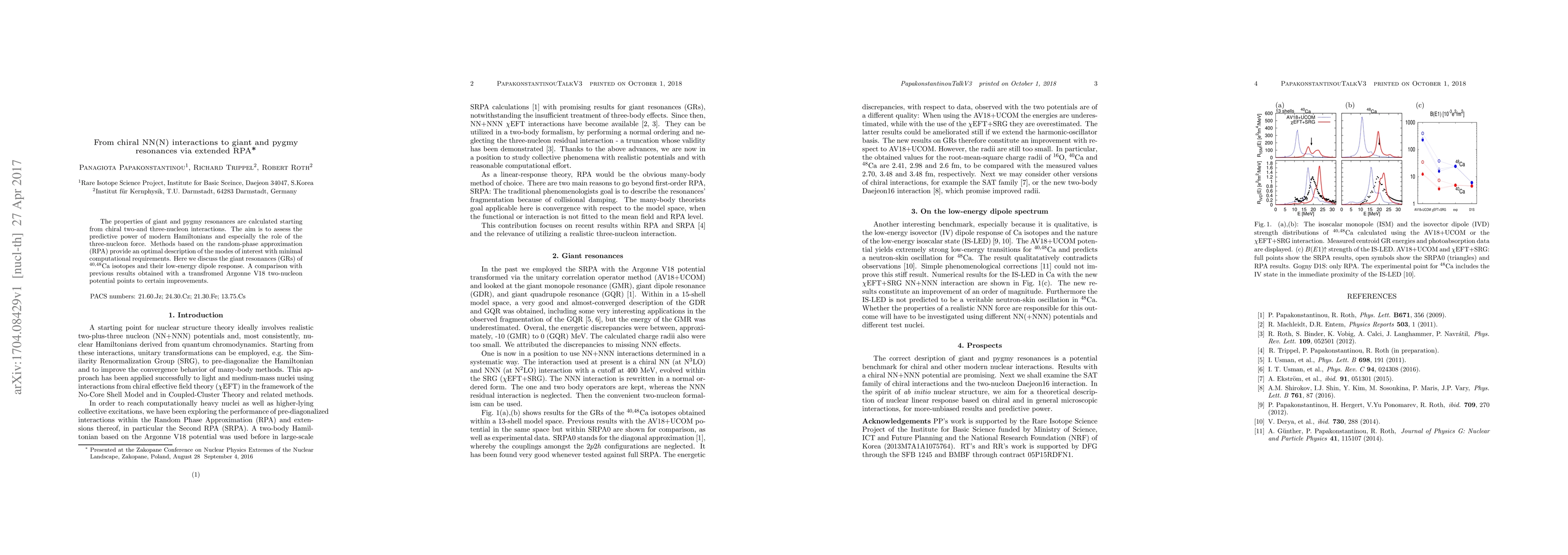 The properties of giant and pygmy resonances are calculated starting from chiral two-and three-nucleon interactions. The aim is to assess the predictive power of modern Hamiltonians and especially the role of the three-nucleon force. Methods based on the random-phase approximation (RPA) provide an optimal description of the modes of interest with minimal computational requirements. Here we discuss the giant resonances (GRs) of 40,48Ca isotopes and their low-energy dipole response. A comparison with previous results obtained with a transformed Argonne V18 two-nucleon potential points to certain improvements.