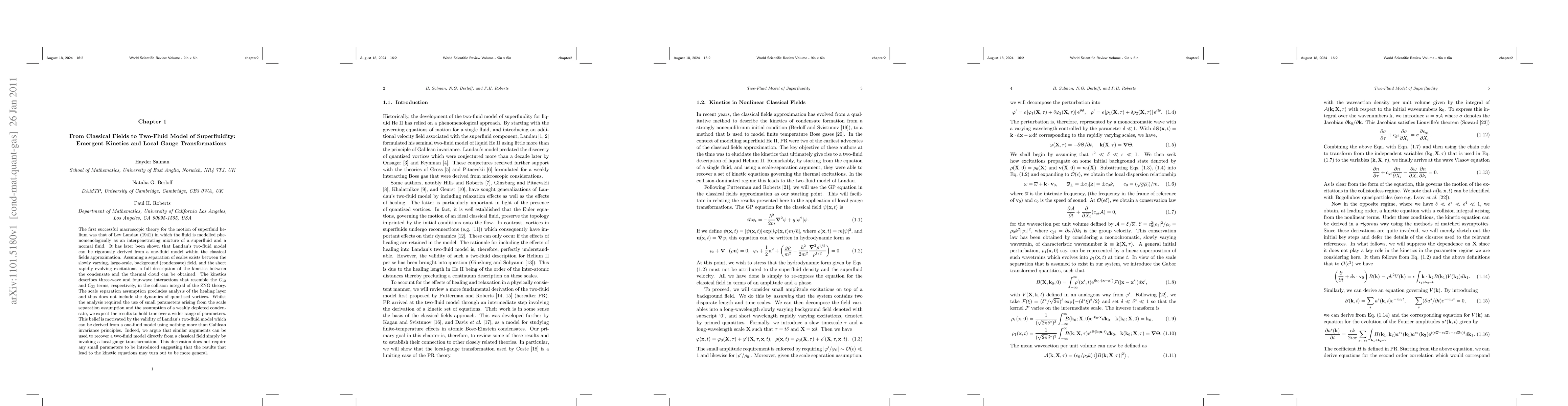 The first successful macroscopic theory for the motion of superfluid helium was that of Lev Landau (1941) in which the fluid is modelled phenomenologically as an interpenetrating mixture of a superfluid and a normal fluid. It has later been shown that Landau's two-fluid model can be rigorously derived from a one-fluid model within the classical fields approximation. Assuming a separation of scales exists between the slowly varying, large-scale, background (condensate) field, and the short rapidly evolving excitations, a full description of the kinetics between the condensate and the thermal cloud can be obtained. The kinetics describes three-wave and four-wave interactions that resemble the C_{12} and C_{22} terms, respectively, in the collision integral of the ZNG theory. The scale separation assumption precludes analysis of the healing layer and thus does not include the dynamics of quantised vortices. Whilst the analysis required the use of small parameters arising from the scale separation assumption and the assumption of a weakly depleted condensate, we expect the results to hold true over a wider range of parameters. This belief is motivated by the validity of Landau's two-fluid model which can be derived from a one-fluid model using nothing more than Galilean invariance principles. Indeed, we argue that similar arguments can be used to recover a two-fluid model directly from a classical field simply by invoking a local gauge transformation. This derivation does not require any small parameters to be introduced suggesting that the results that lead to the kinetic equations may turn out to be more general.