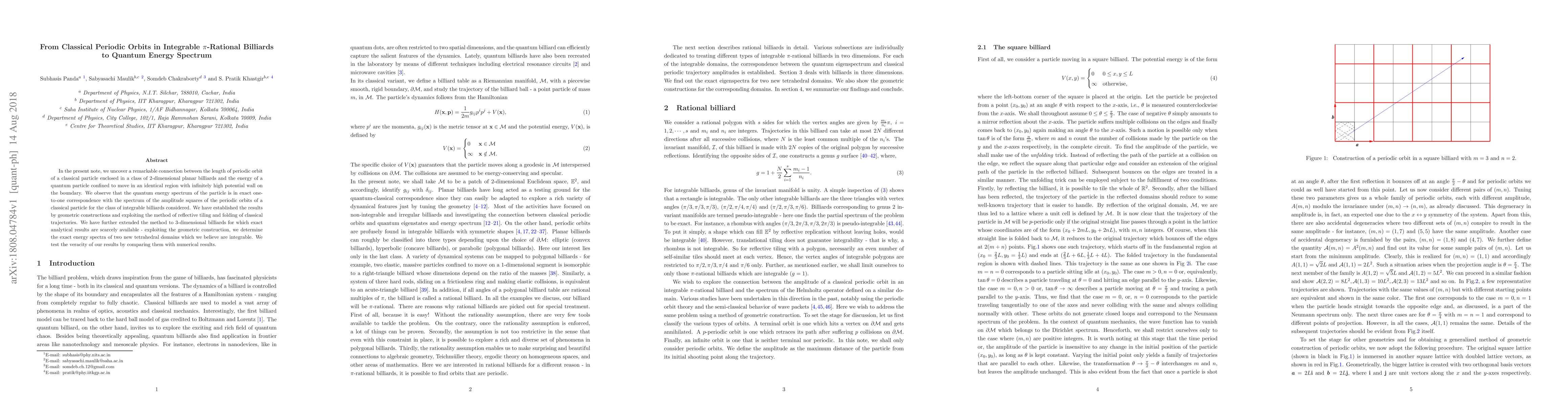 This paper establishes a connection between classical periodic orbits in integrable planar and 3-dimensional billiards and the energy spectrum of quantum particles in the same regions. The quantum energy spectrum matches the amplitude squares of classical periodic orbits, determined via reflective tiling and folding methods, with exact analytical results provided for new integrable tetrahedral domains.