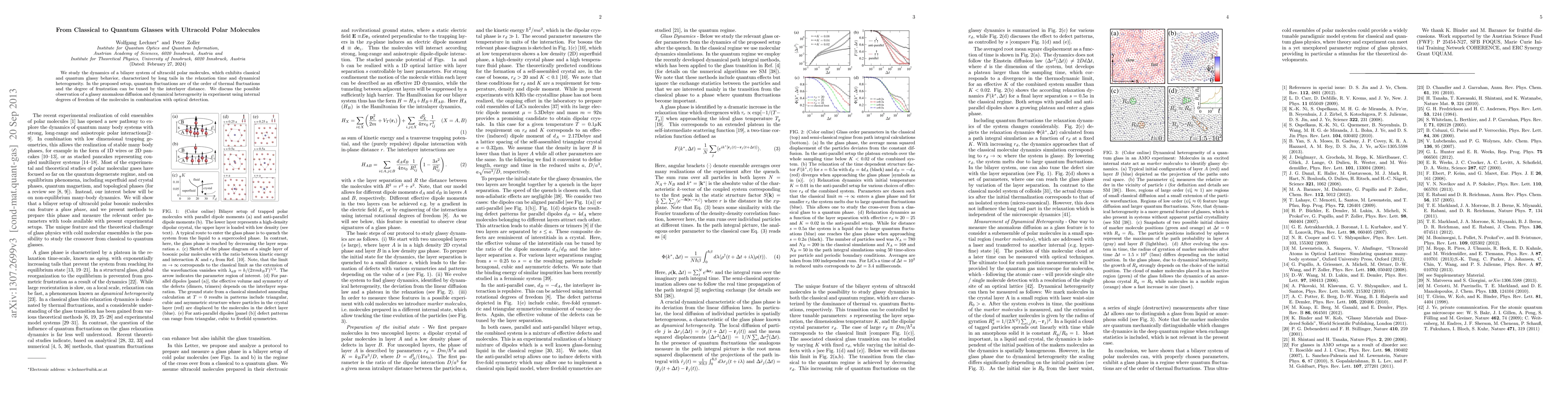 The dynamics of a bilayer system of ultracold dipolar molecules exhibits classical and quantum glassy behavior, characterized by long tails in the relaxation time and dynamical heterogeneity. In the proposed setup, quantum fluctuations are of the order of thermal fluctuations and the degree of frustration can tuned by the interlayer distance. We present experimental accessible order parameters based on marker molecules, distinguished by properly chosen internal levels, and find quantum features of dynamical heterogeneity.