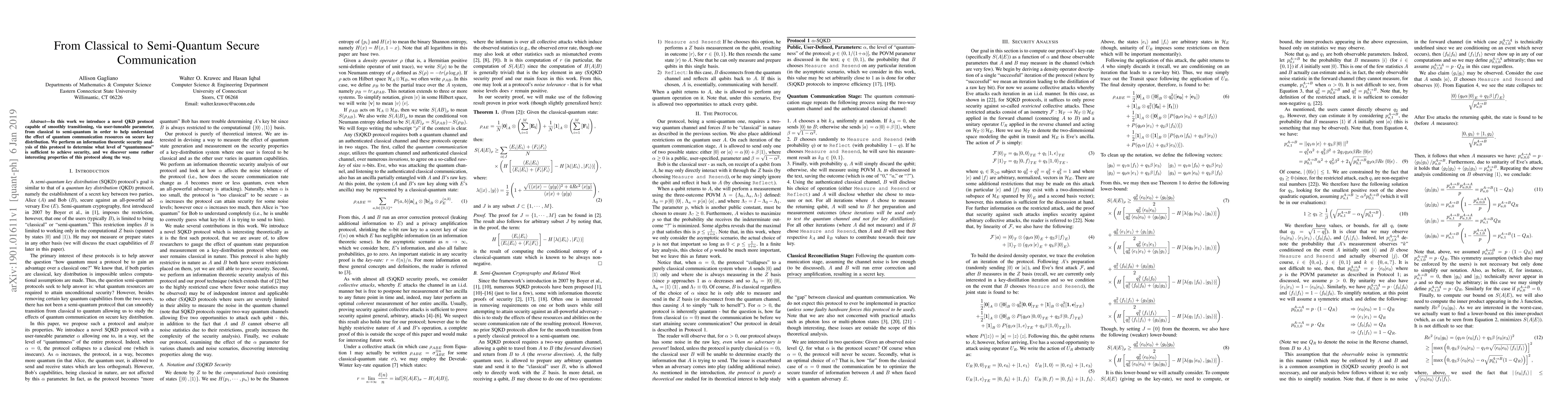 In this work we introduce a novel QKD protocol capable of smoothly transitioning, via user-tuneable parameter, from classical to semi-quantum in order to help understand the effect of quantum communication resources on secure key distribution. We perform an information theoretic security analysis of this protocol to determine what level of "quantumness" is sufficient to achieve security, and we discover some rather interesting properties of this protocol along the way.