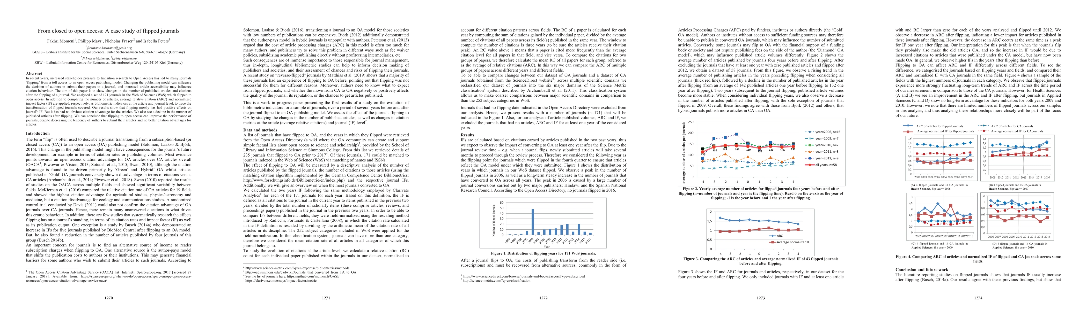 This paper examines the impact of 171 journals transitioning from toll access to open access, finding that while the normalized impact factor improved, the number of published articles declined, and there was no significant citation advantage for the articles. The study highlights the mixed effects of flipping journals on their overall performance.