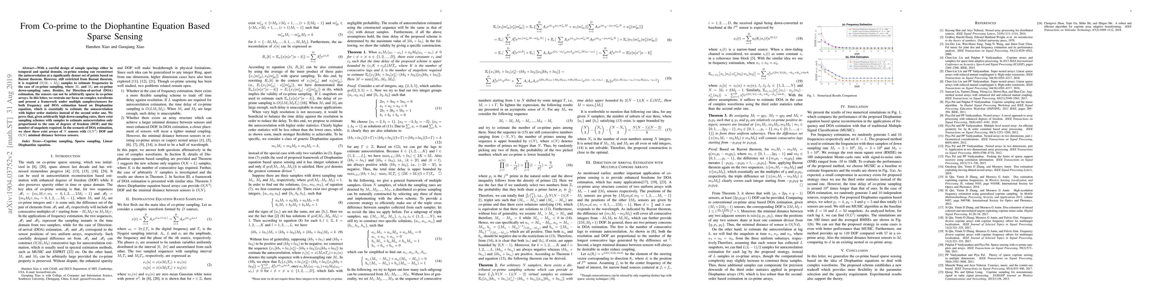 With a careful design of sample spacings either in temporal and spatial domain, co-prime sensing can reconstruct the autocorrelation at a significantly denser set of points based on Bazout theorem. However, still restricted from Bazout theorem, it is required O(M1 + M2) samples to estimate frequencies in the case of co-prime sampling, where M1 and M2 are co-prime down-sampling rates. Besides, for Direction-of-arrival (DOA) estimation, the sensors can not be arbitrarily sparse in co-prime arrays. In this letter, we restrain our focus on complex waveforms and present a framework under multiple samplers/sensors for both frequency and DOA estimation based on Diophantine equation, which is essentially to estimate the autocorrelation with higher order statistics instead of the second order one. We prove that, given arbitrarily high down-sampling rates, there exist sampling schemes with samples to estimate autocorrelation only proportional to the sum of degrees of freedom (DOF) and the number of snapshots required. In the scenario of DOA estimation, we show there exist arrays of N sensors with O(N^3) DOF and O(N) minimal distance between sensors.