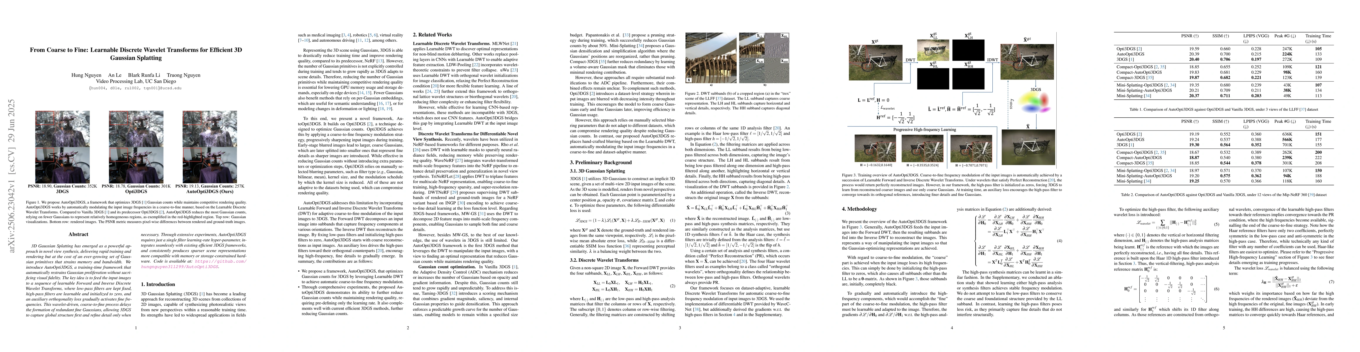 3D Gaussian Splatting has emerged as a powerful approach in novel view synthesis, delivering rapid training and rendering but at the cost of an ever-growing set of Gaussian primitives that strains memory and bandwidth. We introduce AutoOpti3DGS, a training-time framework that automatically restrains Gaussian proliferation without sacrificing visual fidelity. The key idea is to feed the input images to a sequence of learnable Forward and Inverse Discrete Wavelet Transforms, where low-pass filters are kept fixed, high-pass filters are learnable and initialized to zero, and an auxiliary orthogonality loss gradually activates fine frequencies. This wavelet-driven, coarse-to-fine process delays the formation of redundant fine Gaussians, allowing 3DGS to capture global structure first and refine detail only when necessary. Through extensive experiments, AutoOpti3DGS requires just a single filter learning-rate hyper-parameter, integrates seamlessly with existing efficient 3DGS frameworks, and consistently produces sparser scene representations more compatible with memory or storage-constrained hardware.