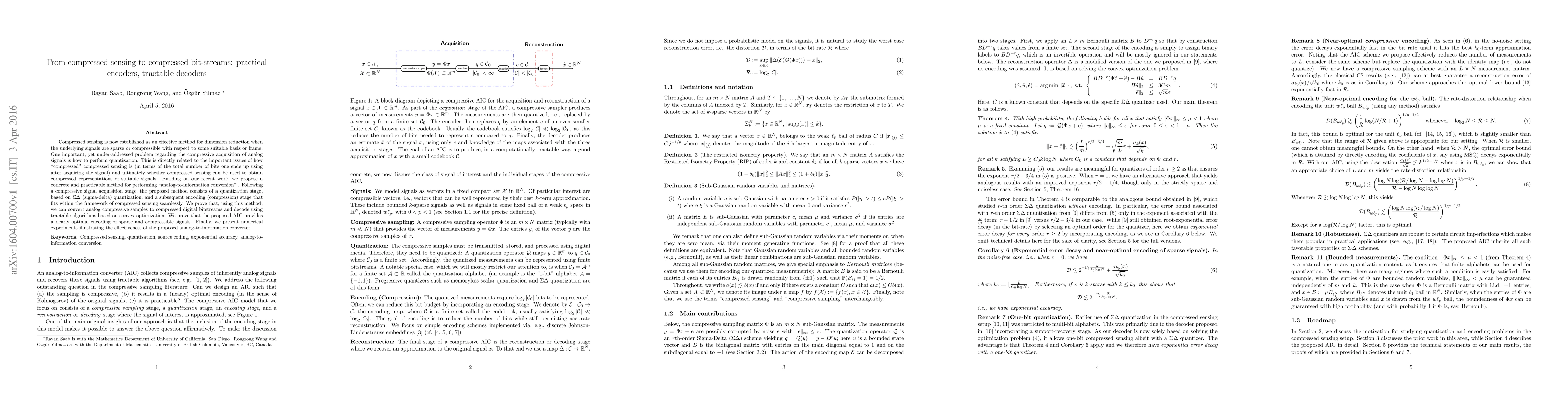This paper proposes a practical method for converting analog signals into compressed digital bitstreams using sigma-delta quantization and compressed sensing. The method enables efficient encoding and decoding via convex optimization, demonstrating nearly optimal performance for sparse and compressible signals.