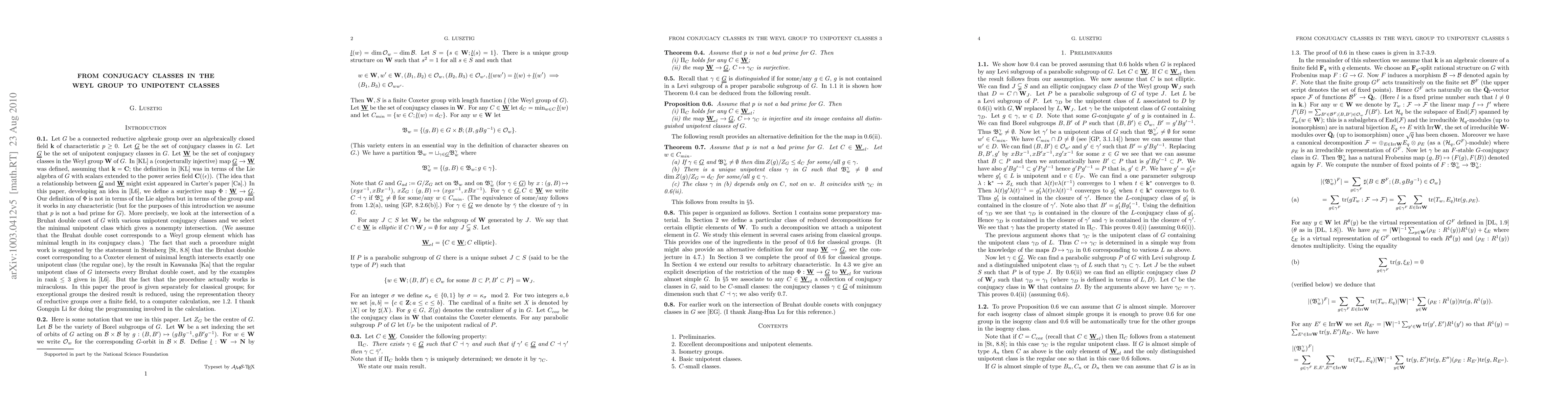 This paper defines a surjective map linking conjugacy classes in the Weyl group of a connected reductive algebraic group G to the unipotent classes within G, establishing a significant connection in the structure theory of these groups.