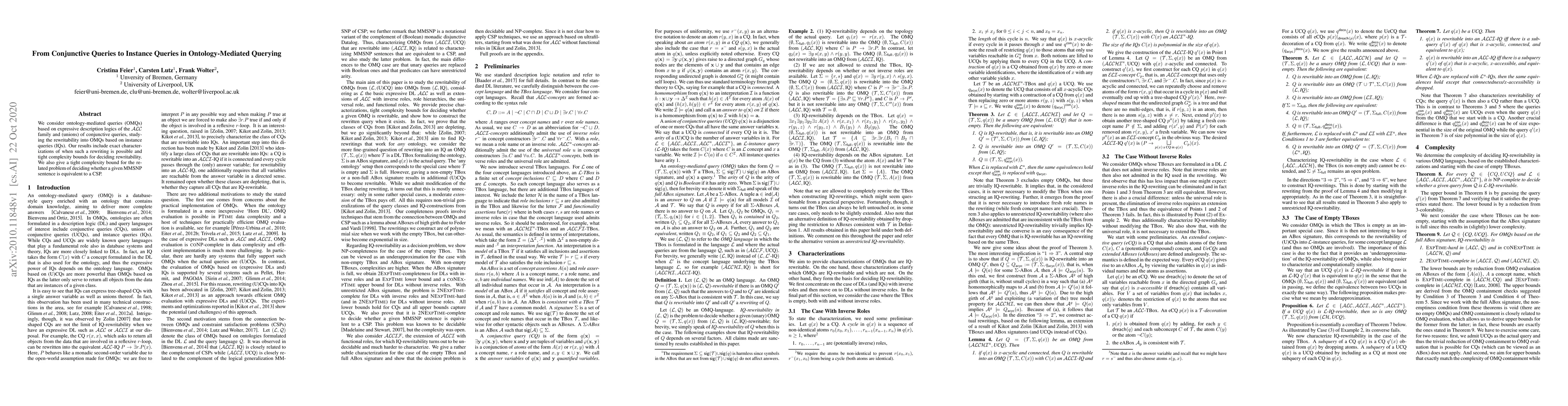 This paper investigates the transformation of ontology-mediated queries (OMQs) based on ALC description logics from conjunctive queries to instance queries (IQs), providing exact conditions for rewritability and establishing tight complexity bounds for both rewritability and the equivalence of MMSNP sentences to CSPs.