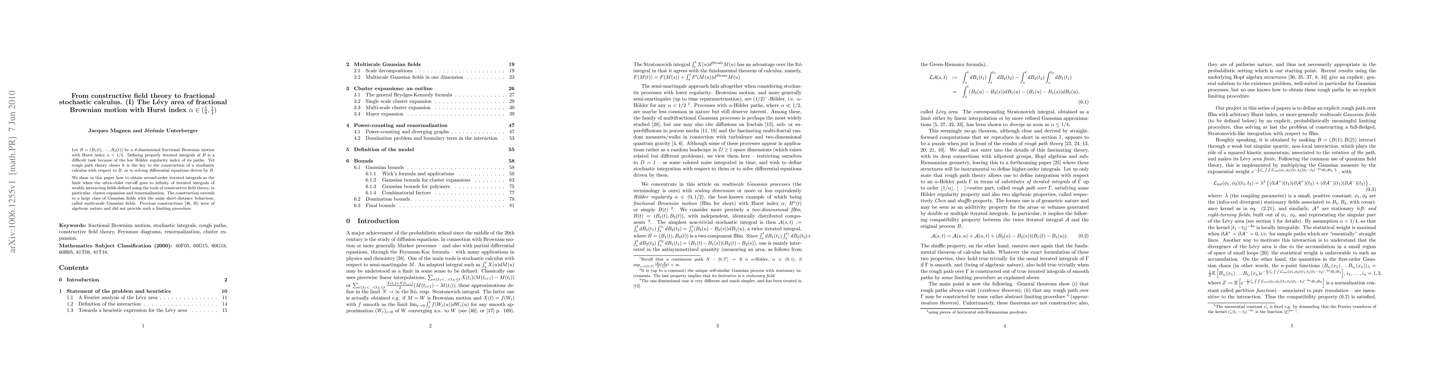 Let $B=(B_1(t),\ldots,B_d(t))$ be a $d$-dimensional fractional Brownian motion with Hurst index $\alpha<1/4$. Defining properly iterated integrals of $B$ is a difficult task because of the low H\"older regularity index of its paths. Yet rough path theory shows it is the key to the construction of a stochastic calculus with respect to $B$, or to solving differential equations driven by $B$. We show in this paper how to obtain second-order iterated integrals as the limit when the ultra-violet cut-off goes to infinity of iterated integrals of weakly interacting fields defined using the tools of constructive field theory, in particular, cluster expansion and renormalization. The construction extends to a large class of Gaussian fields with the same short-distance behaviour, called multi-scale Gaussian fields. Previous constructions \cite{Unt-Holder,Unt-fBm} were of algebraic nature and did not provide such a limiting procedure.