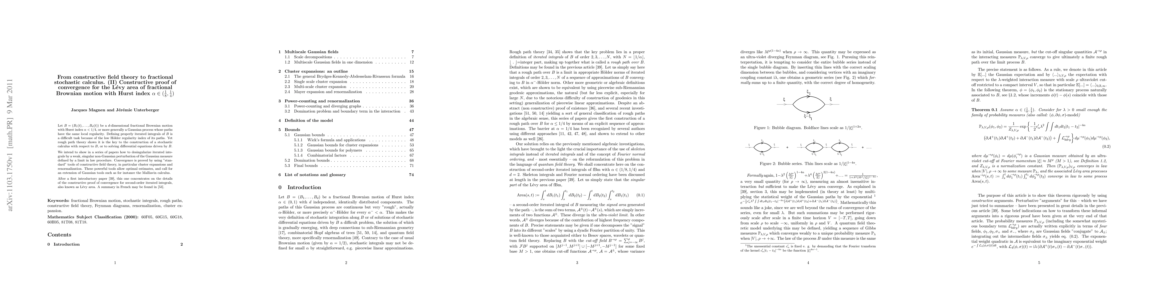 {Let $B=(B_1(t),...,B_d(t))$ be a $d$-dimensional fractional Brownian motion with Hurst index $\alpha<1/4$, or more generally a Gaussian process whose paths have the same local regularity. Defining properly iterated integrals of $B$ is a difficult task because of the low H\"older regularity index of its paths. Yet rough path theory shows it is the key to the construction of a stochastic calculus with respect to $B$, or to solving differential equations driven by $B$. We intend to show in a series of papers how to desingularize iterated integrals by a weak, singular non-Gaussian perturbation of the Gaussian measure defined by a limit in law procedure. Convergence is proved by using "standard" tools of constructive field theory, in particular cluster expansions and renormalization. These powerful tools allow optimal estimates, and call for an extension of Gaussian tools such as for instance the Malliavin calculus. After a first introductory paper \cite{MagUnt1}, this one concentrates on the details of the constructive proof of convergence for second-order iterated integrals, also known as L\'evy area.