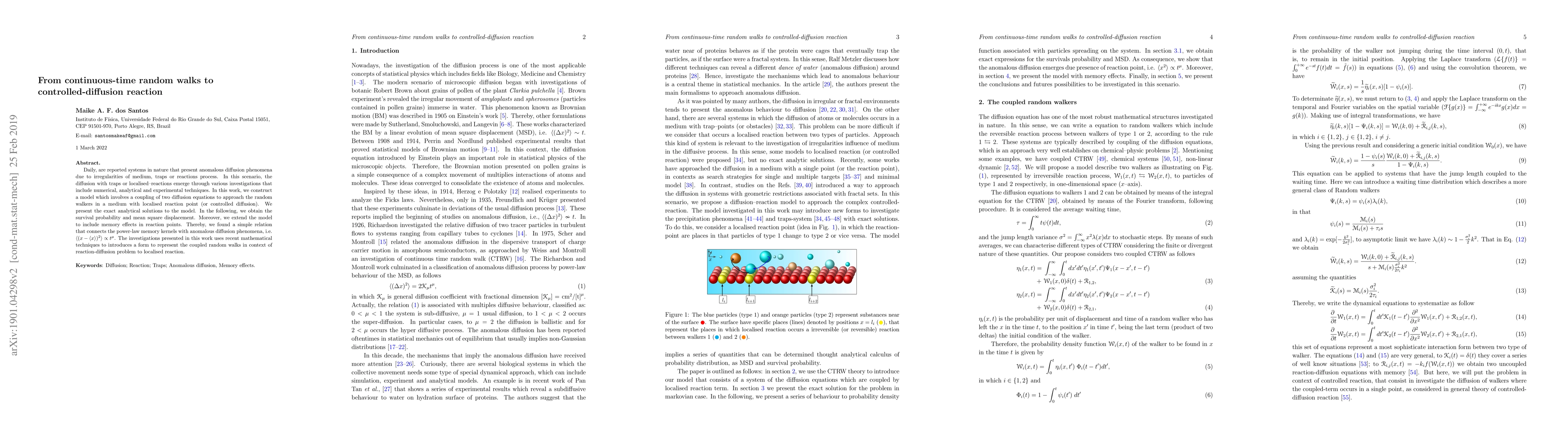 This paper develops a model coupling two diffusion equations to simulate random walkers in a medium with localized reaction points, providing exact analytical solutions. It explores survival probability, mean square displacement, and extends the model to include memory effects, establishing a link between power-law memory kernels and anomalous diffusion.