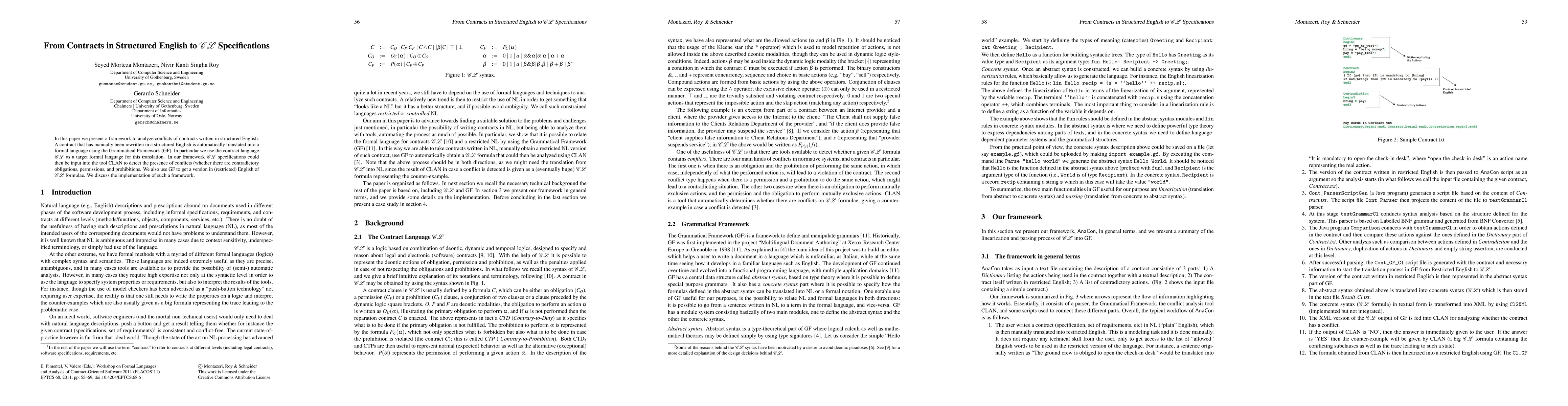 Researchers developed a framework to analyze conflicts in contracts written in structured English and translate them into a formal language using the Grammatical Framework. The framework helps detect contradictions in contract obligations and permissions.
