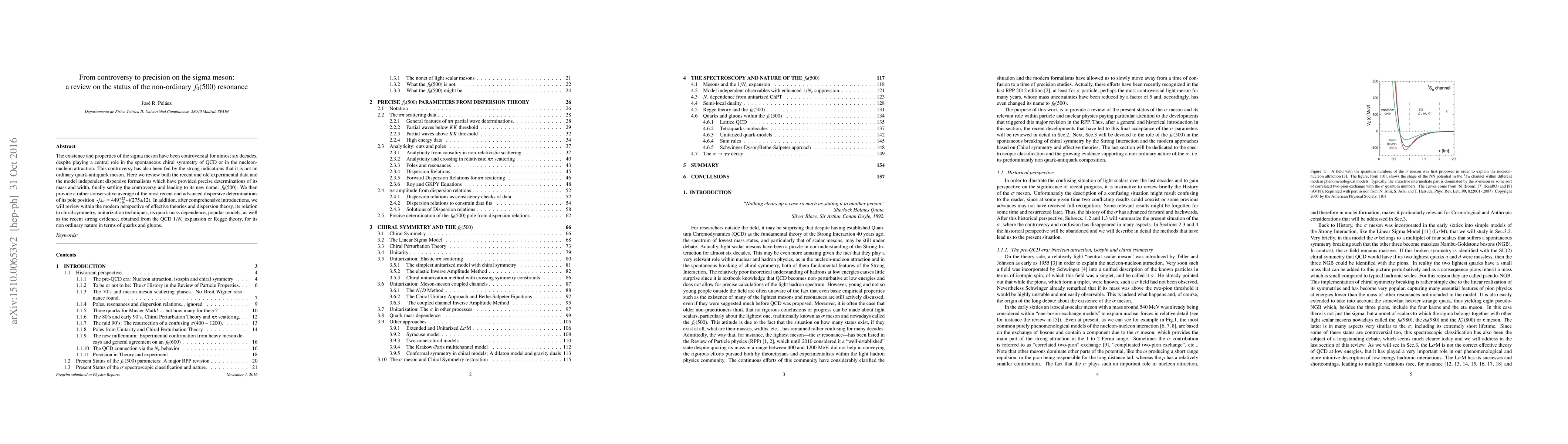 A review of experimental data and theoretical models settles the controversy surrounding the sigma meson, confirming it is not an ordinary quark-antiquark meson, with a precise pole position of 449+22−16 at sqrt(s) = 500 MeV.