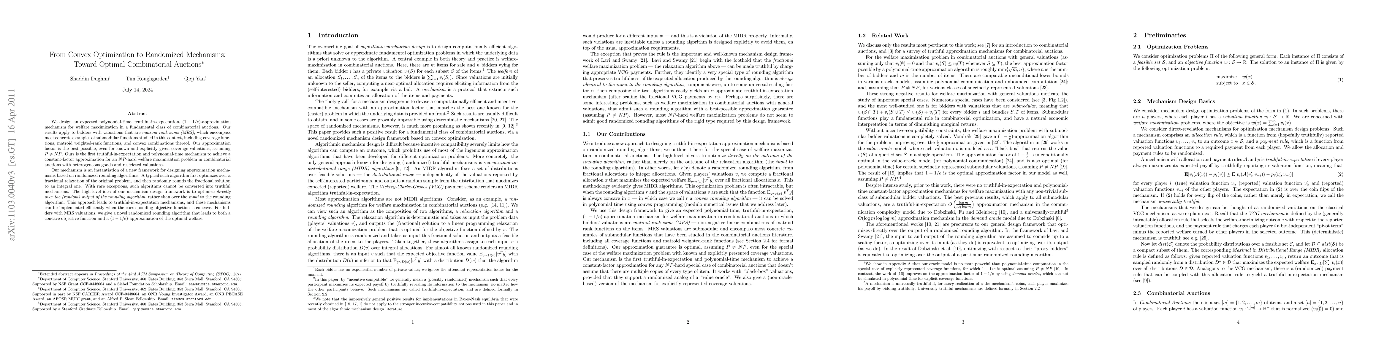 This paper presents a novel polynomial-time, truthful-in-expectation mechanism achieving a (1-1/e)-approximation for welfare maximization in combinatorial auctions with bidders having matroid rank sum valuations. The proposed framework optimizes over the output of randomized rounding algorithms, enabling efficient implementation and optimal approximation for NP-hard welfare maximization problems.