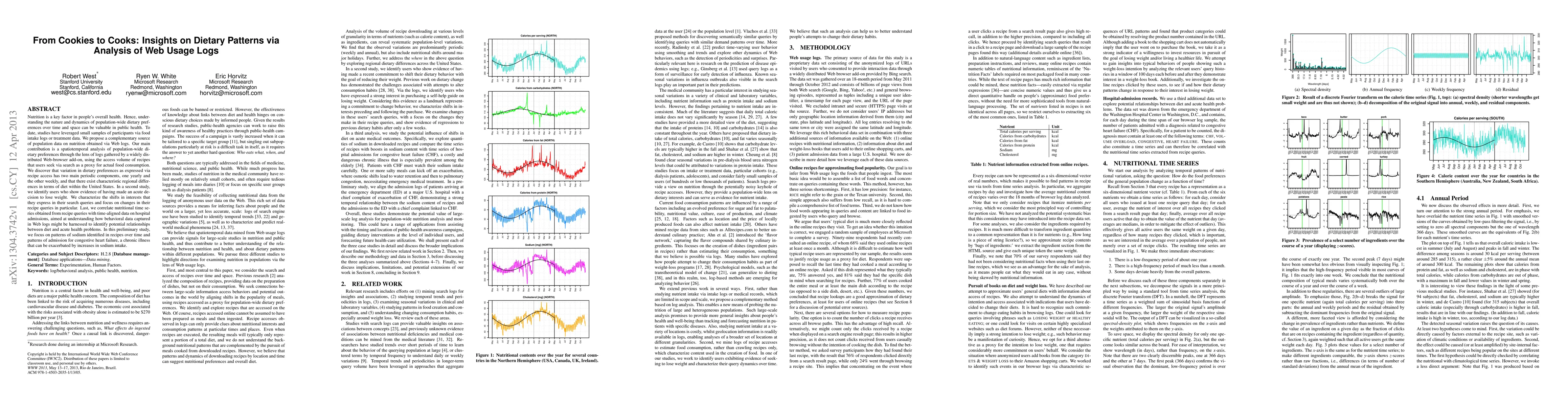 This paper analyzes web usage logs from a browser add-on to study population-wide dietary preferences, revealing yearly and weekly dietary variation and regional differences in the U.S. It also examines shifts in search queries of weight-loss-motivated users and correlates recipe-based dietary data with hospital admissions for congestive heart failure, identifying potential links between diet and health.