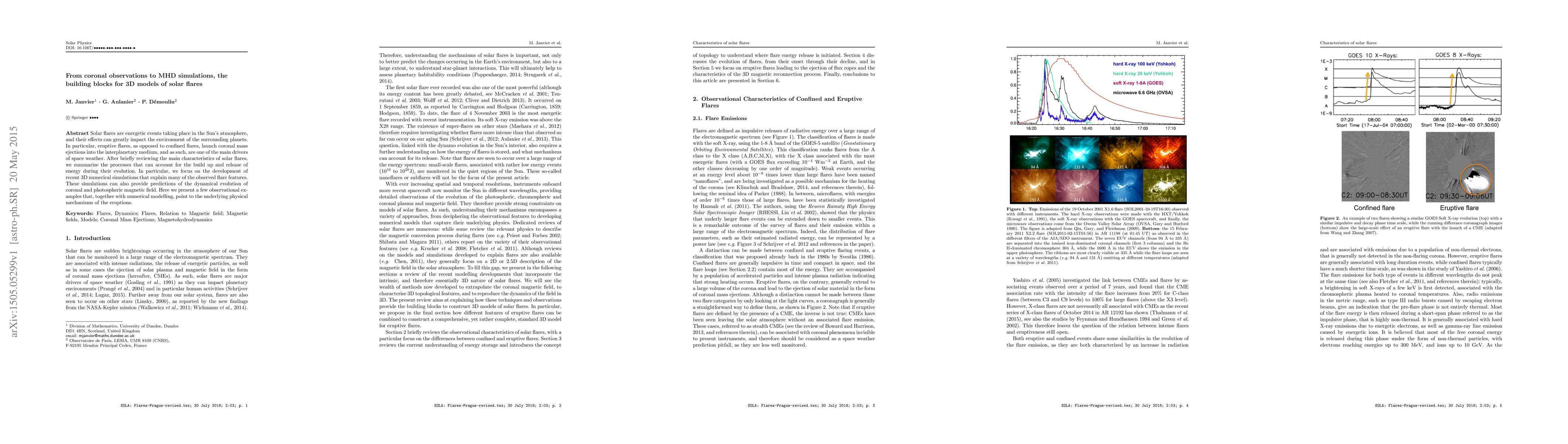 This paper reviews solar flares, emphasizing eruptive flares that drive space weather, and discusses the transition from observational data to 3D MHD simulations that model these energetic events. It highlights recent numerical simulations that explain observed flare features and predict the evolution of magnetic fields.